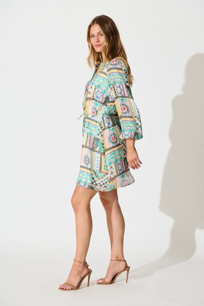 Janice Dress in Multi Patchwork Print