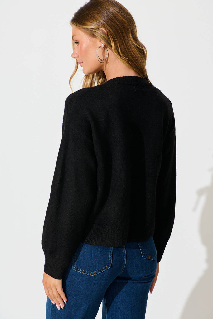 Jayce Knit Cardigan in Black Wool Blend