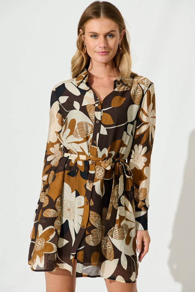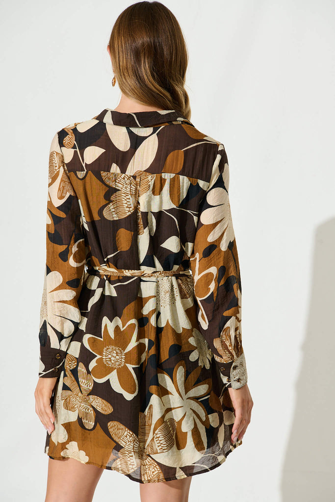 Jazz Shirt Dress In Chocolate And Cream Flower