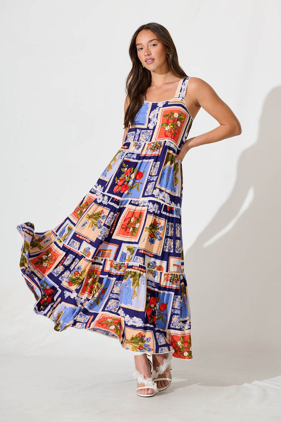 Jenelle Maxi Sundress in Blue Multi Postcard Print