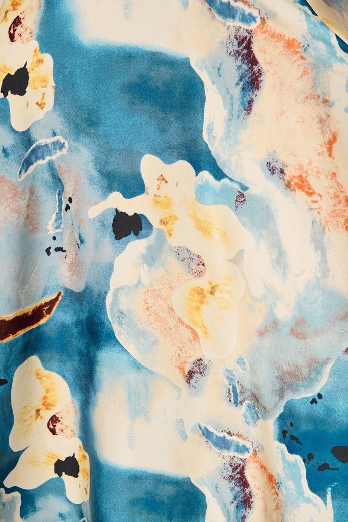 Jenibelle Maxi Dress in Blue And Cream Watercolour Satin