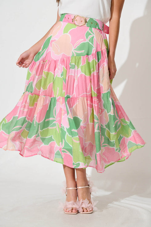 Jessella Skirt In Pink and Green Leaf Print
