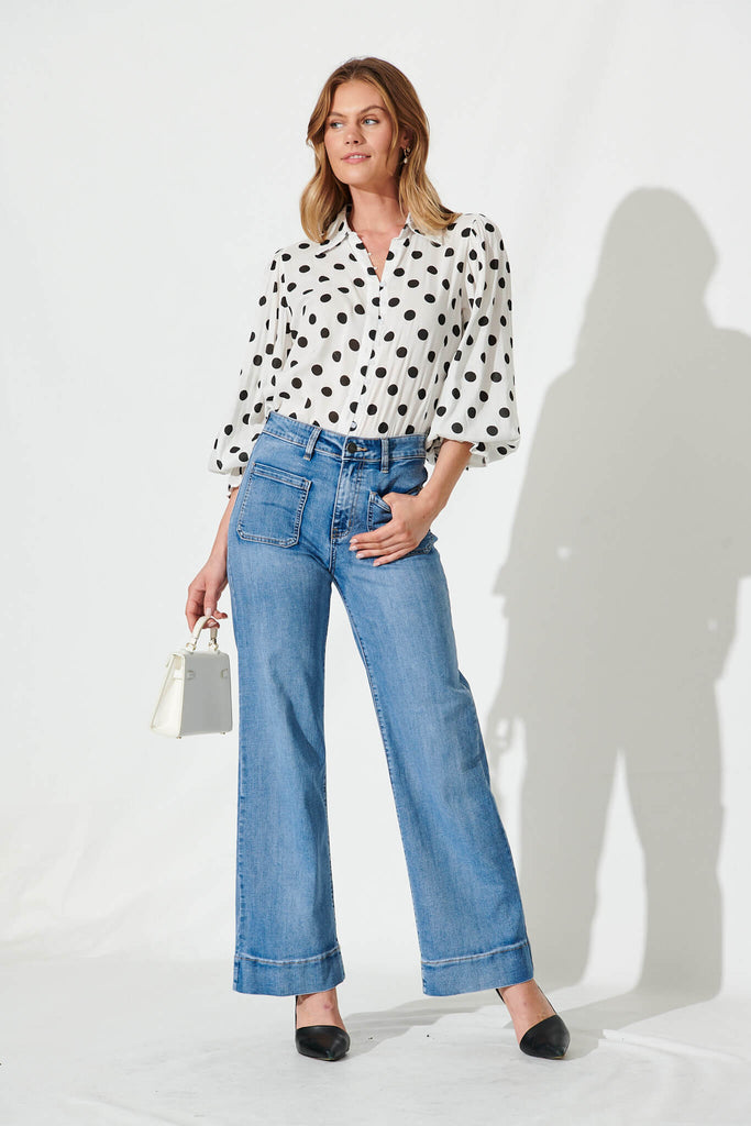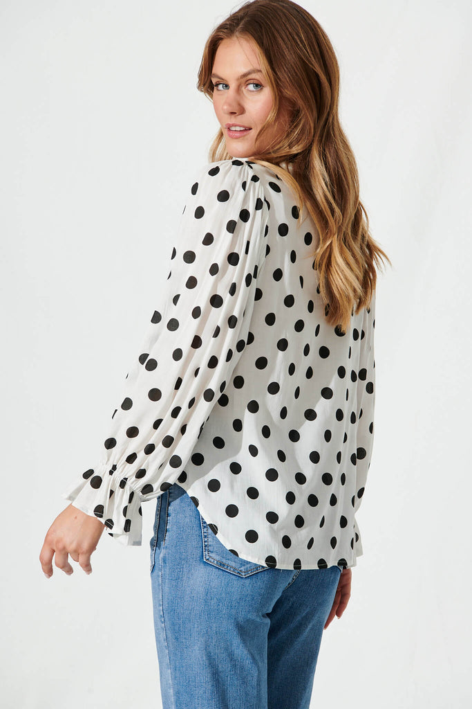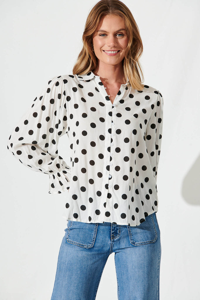 Joan Shirt In White With Black Polka Dot Cotton Blend