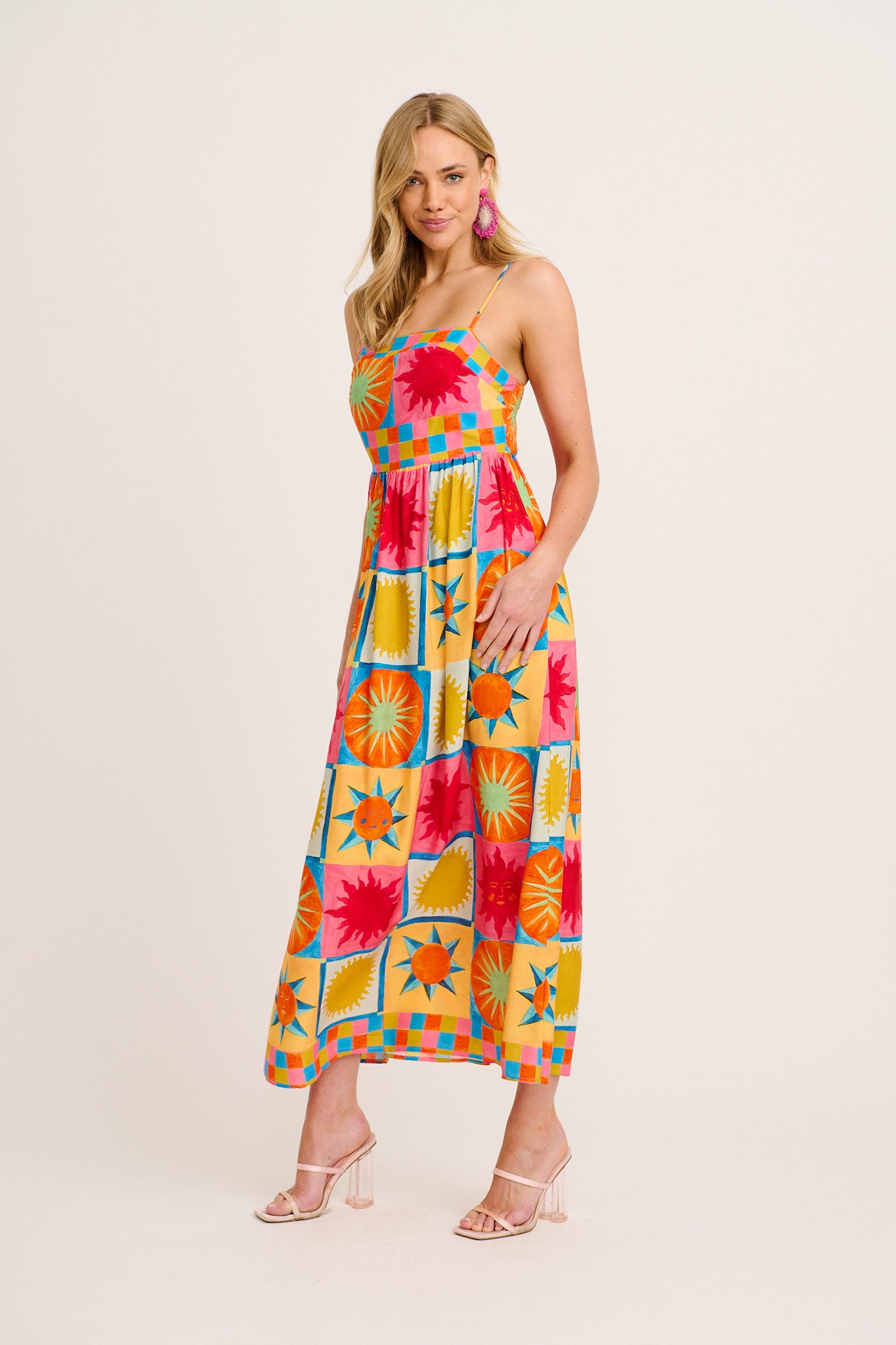 The Jordonna Maxi Sundress in Multi Tile Print is the quintessential warm‑weather wardrobe hero. With its breezy silhouette, playful pattern and effortless ease, this sundress captures the carefree spirit of summer days — perfect for weekend getaways, market strolls or seaside lunches under the sun.