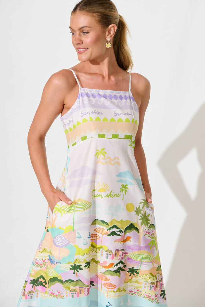Kailana Maxi Sundress in Tropical Border Print Cotton