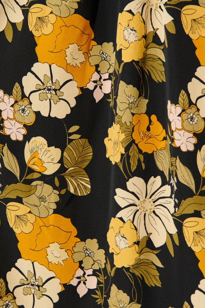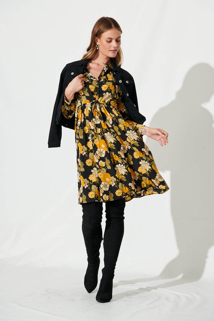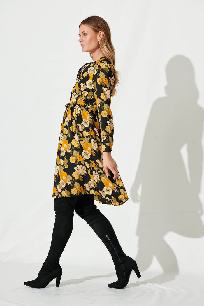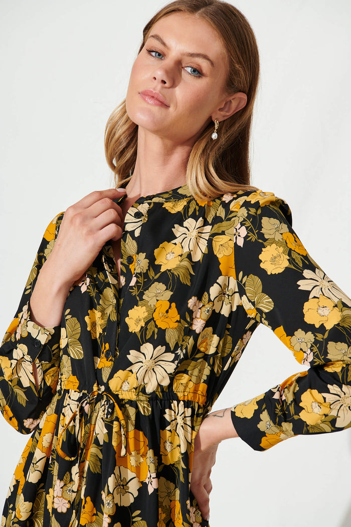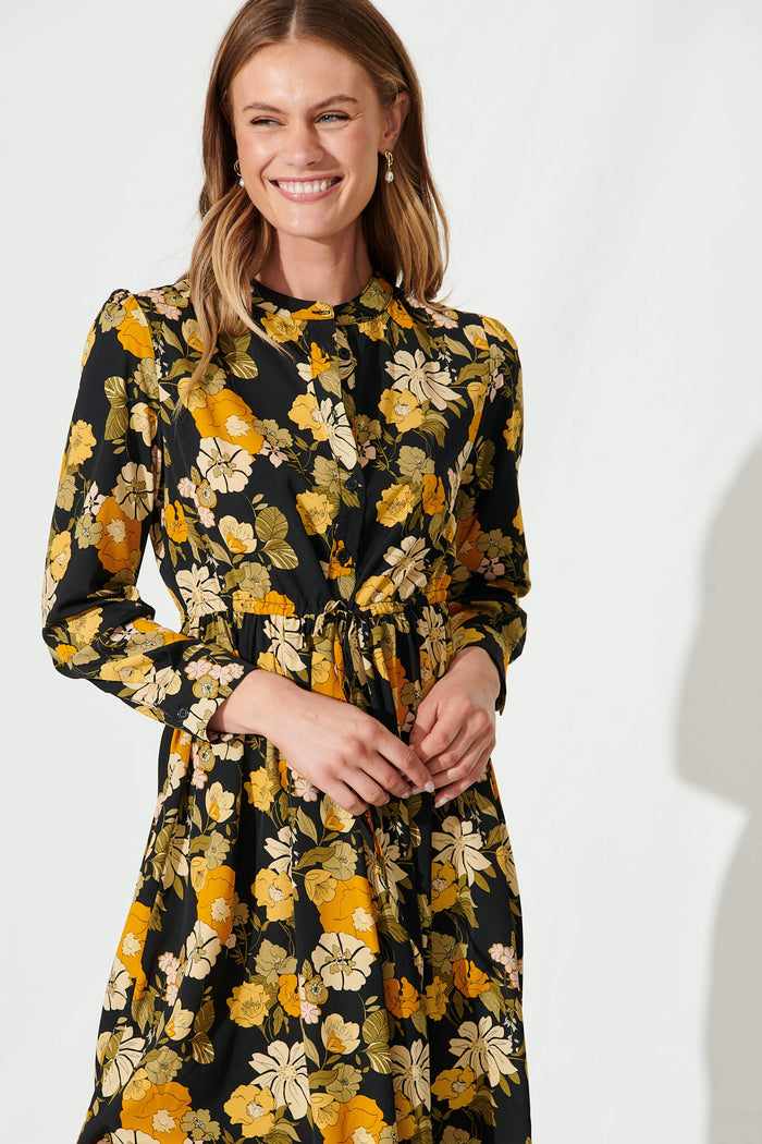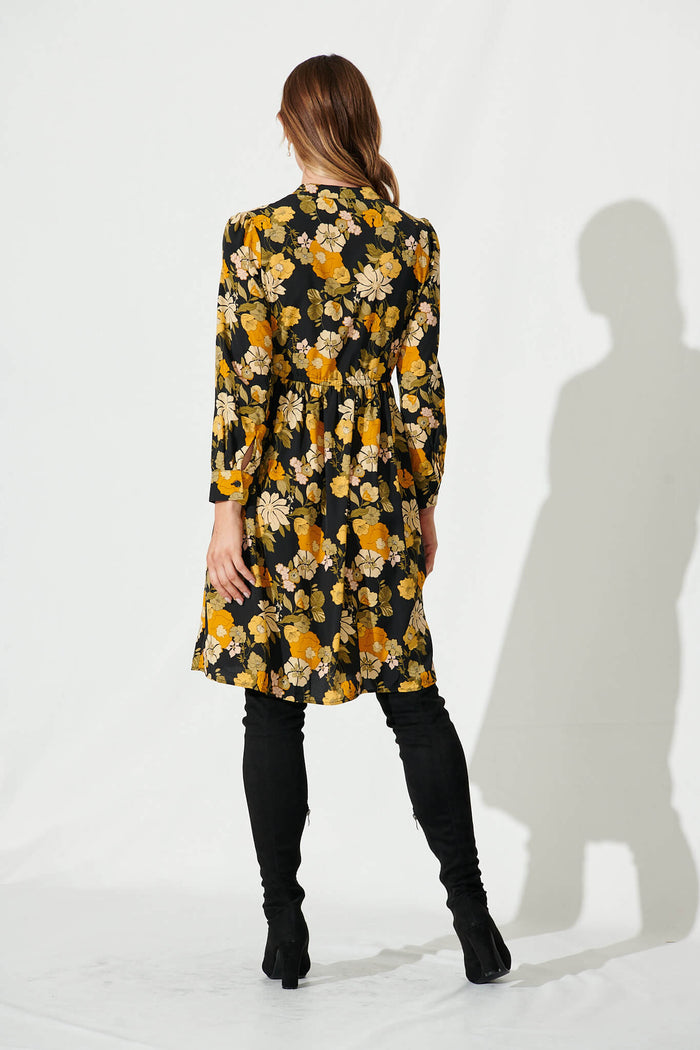 Kelsey Dress In Black With Mustard Floral