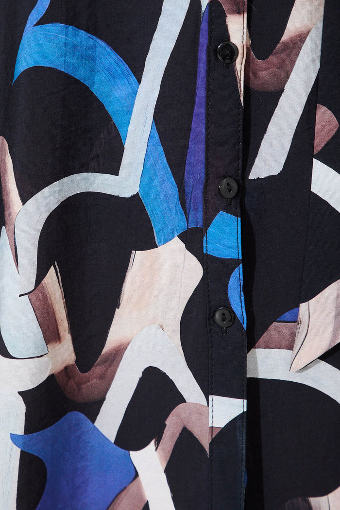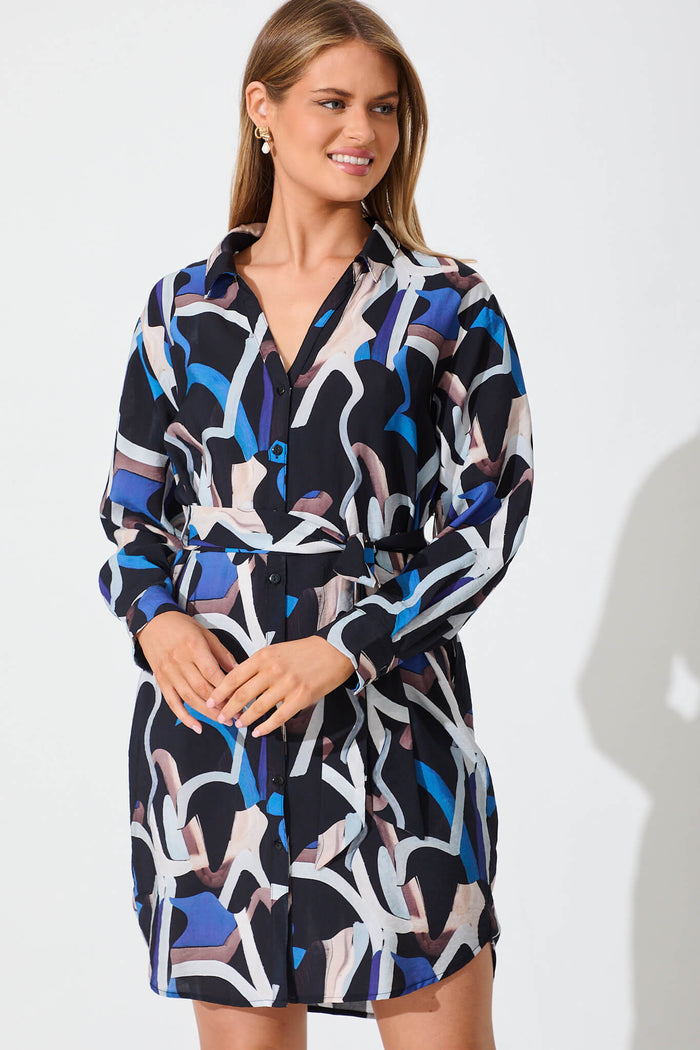 Kerry Shirt Dress In Black With Multi Swirl Print