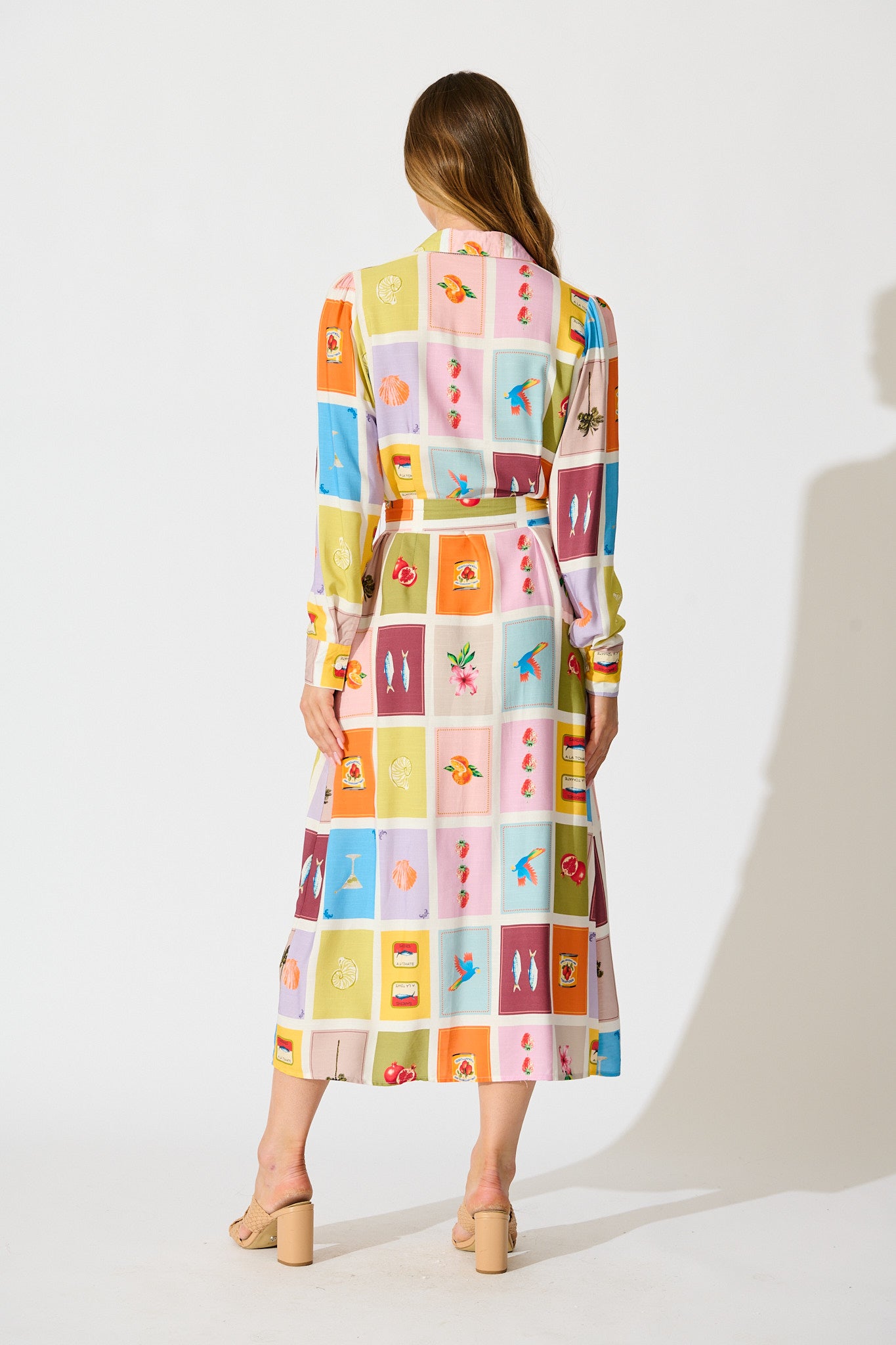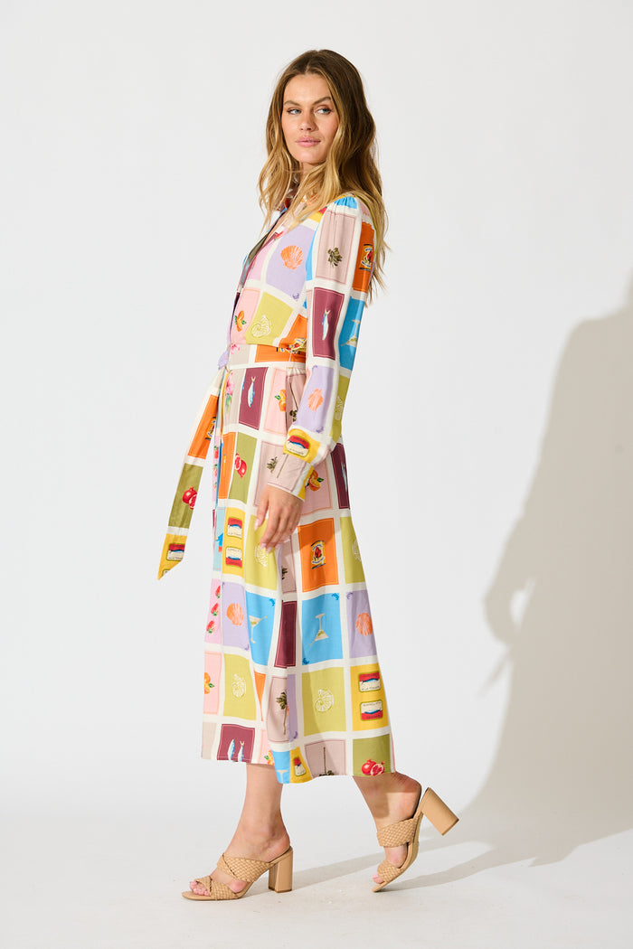 La Dolce Vita Maxi Shirt Dress in Multi Conversational Print