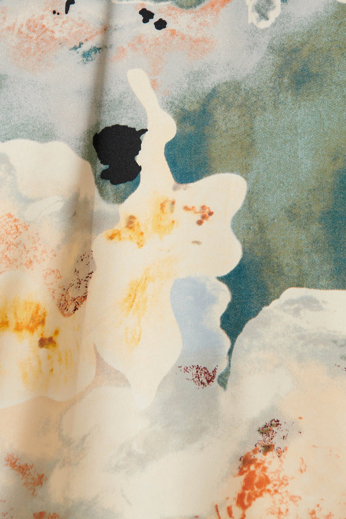 Lacey Wrap Dress In Cream And Green Watercolour Satin