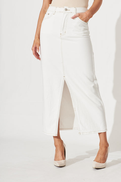 Lattice Maxi Denim Skirt In White