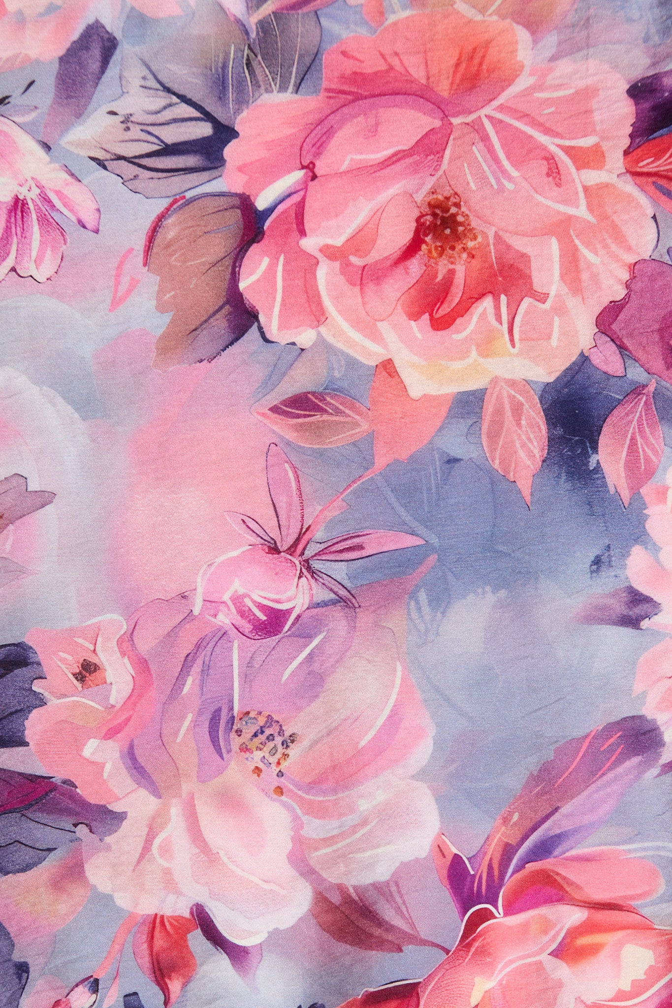 Blue with Pink Floral Cotton