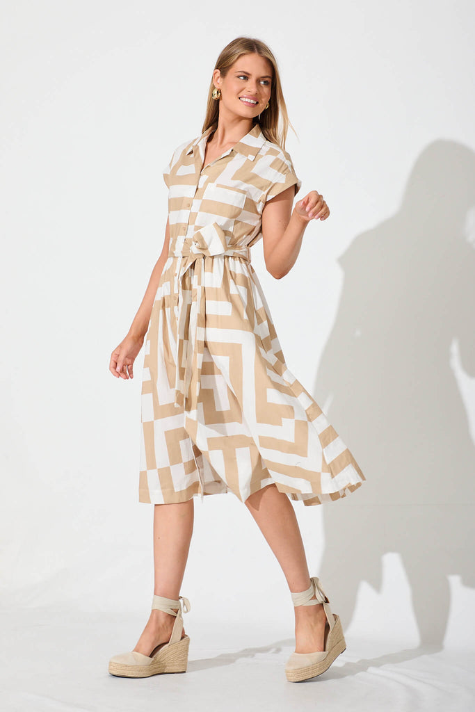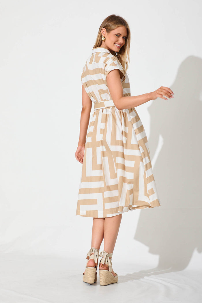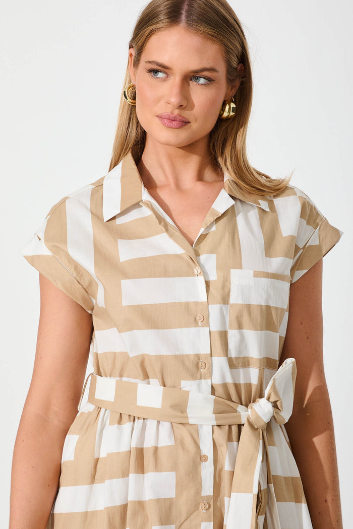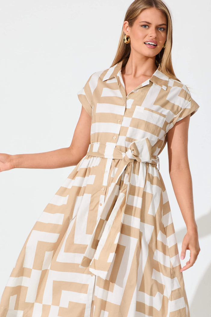 Leilani Midi Shirt Dress Beige With White Geometric Cotton