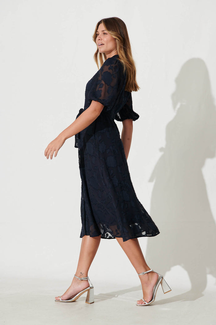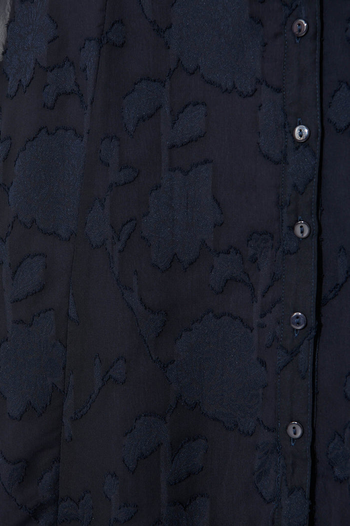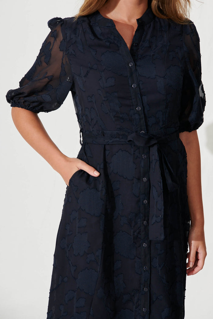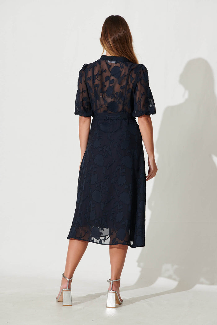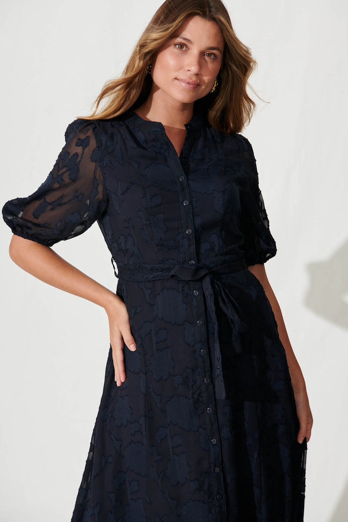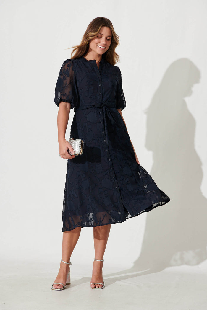 Lilianna Midi Shirt Dress In Navy Burnout Chiffon