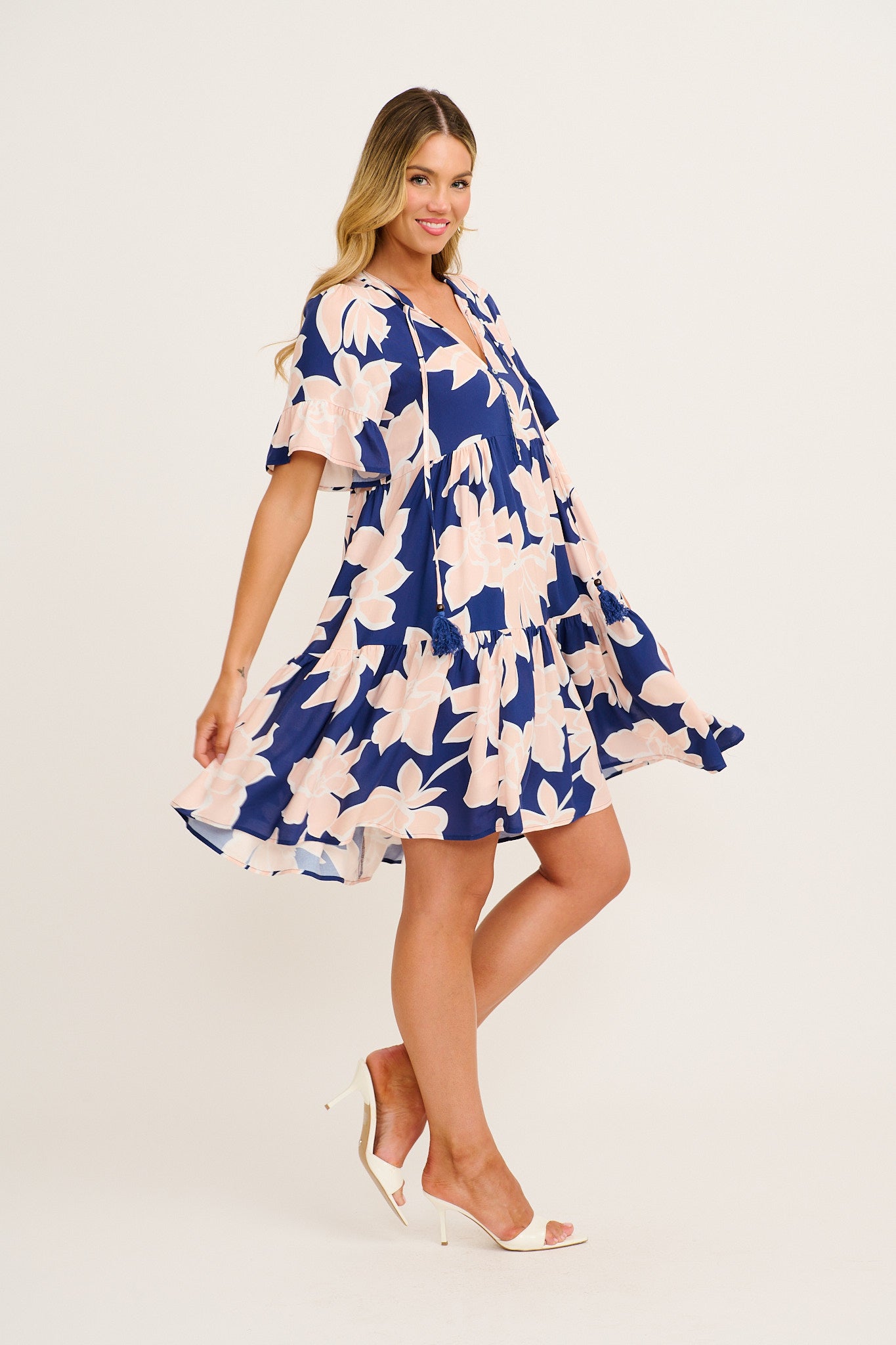 - Tiered skirting for relaxed movement