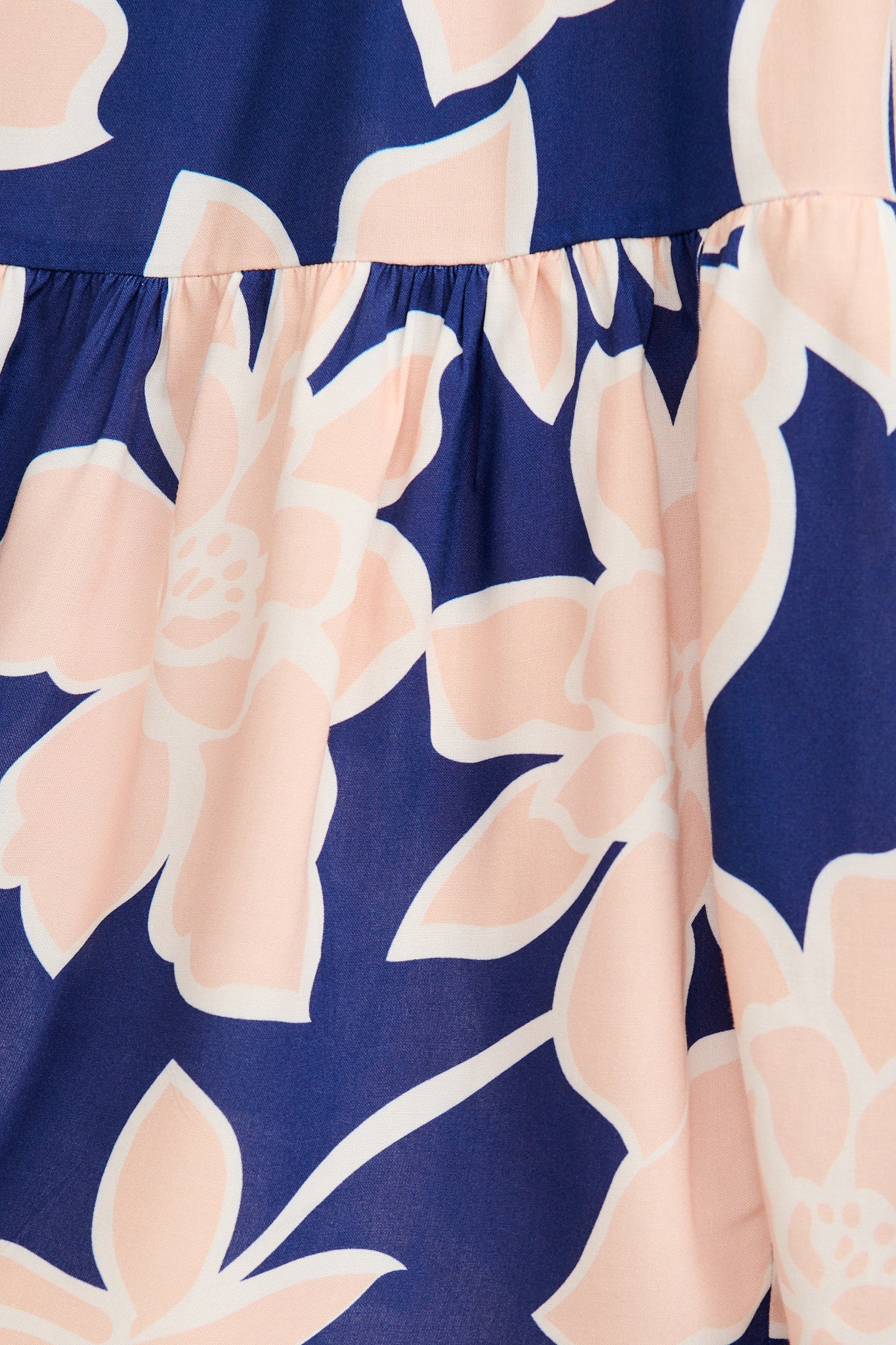 - Navy base with pink floral print (placement may vary)