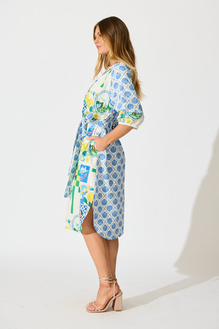 Limoncello Dreams Midi Dress in White Multi Lemon Cotton