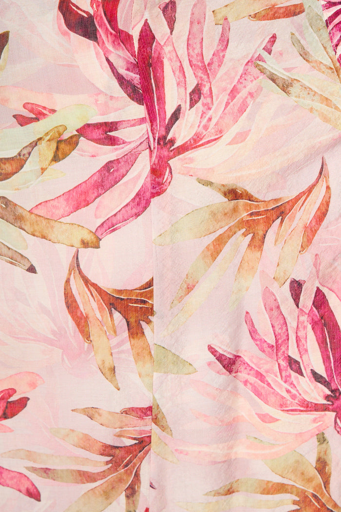 Lira Midi Shirt Dress in Pink Leaf Print