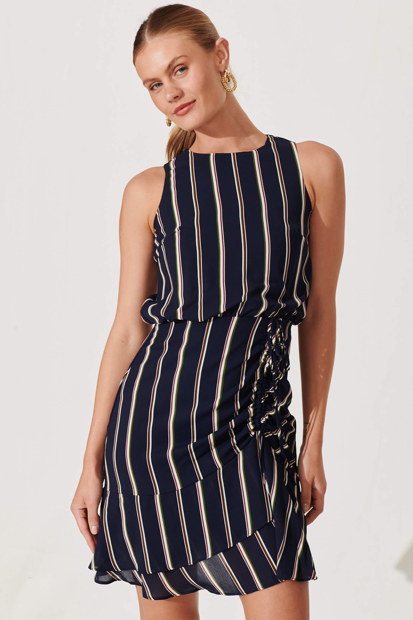 Our model Jordan wears a size AU 8. She is 178cms in height and features a B 91cms W 66cms H 91cms