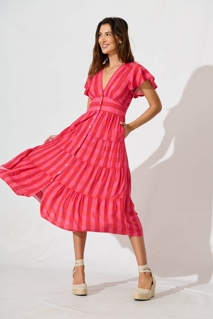 Our Lively Midi Dress is the hero of the summer. With flutter shoulder sleeves shirred waist and a ruched tiered skirt, this dress is comfortable and flattering at the same time. An easy-wearing and versatile silhouette, wear yours with barely-there sandals or a simple heel for a more elevated look.