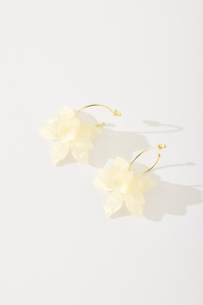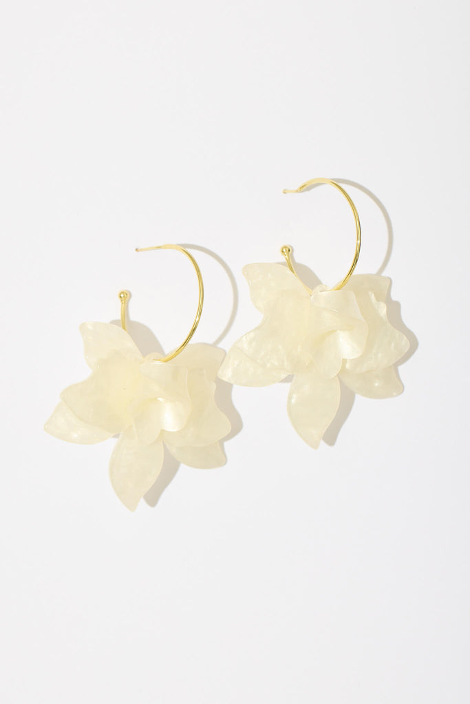 Add a pair of statement earrings to your collection with our gorgeous Lola Drop Earrings. They feature a flower design on a gold hoop setting. Perfect for date night!