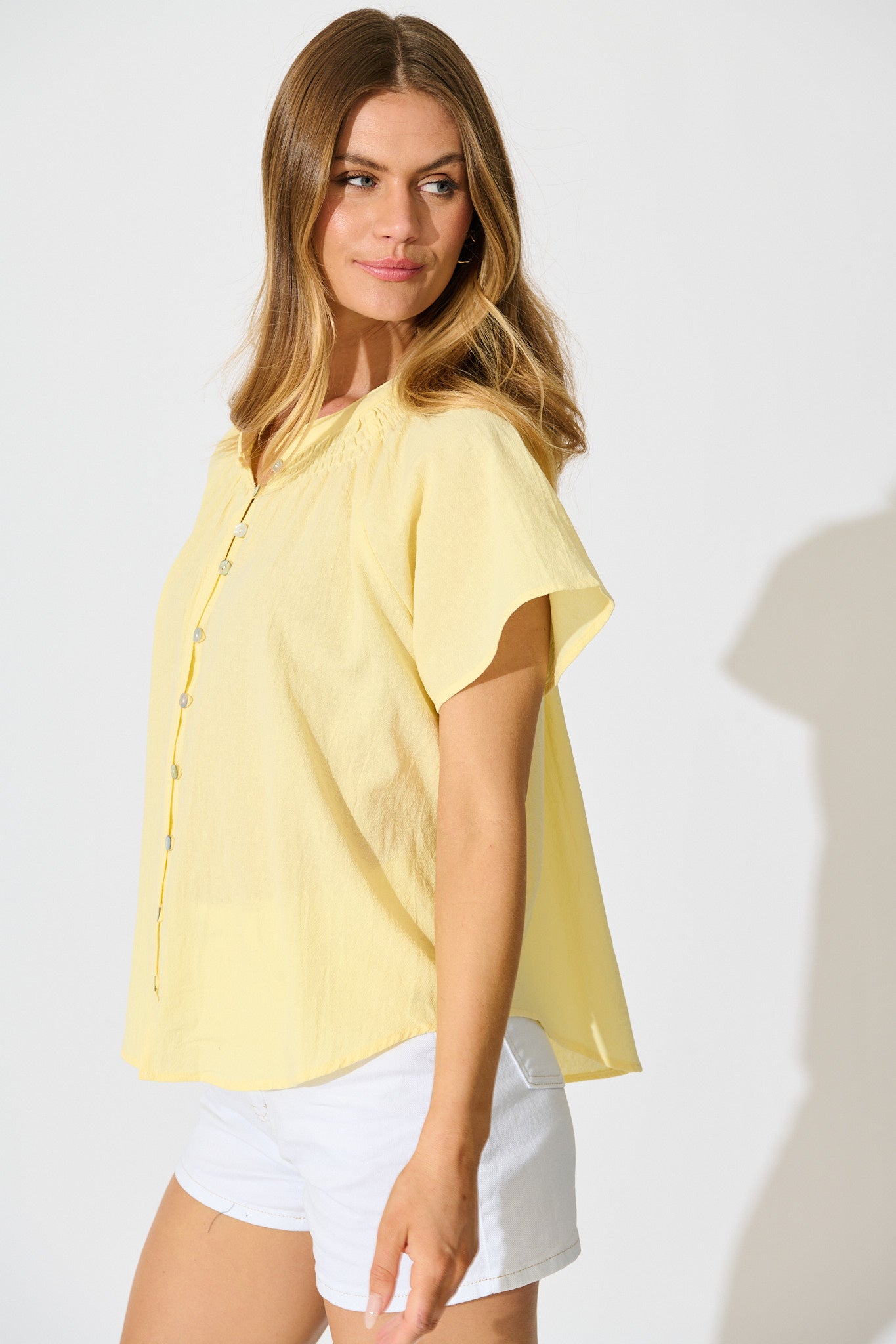 Add an effortless pop of sunshine to your wardrobe with the Lombard Top in Butter Yellow Cotton Linen. With its fresh hue and timeless silhouette, this piece brings an easy elegance to your day-to-day dressing. It’s the kind of top you’ll reach for on repeat, simple, breathable, and chic.
