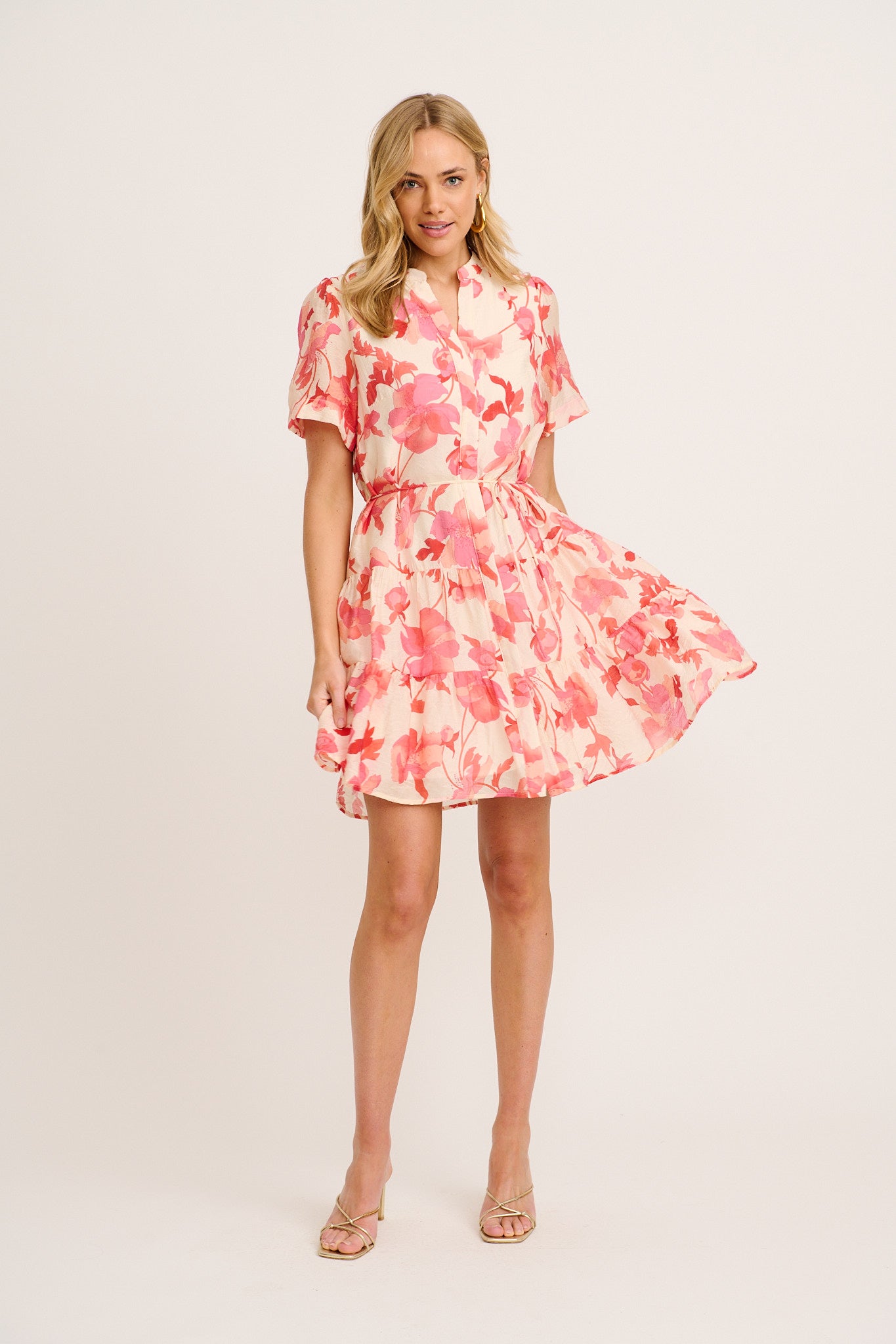 Say yes to soft florals and easy elegance with the Lorea Dress in Cream with Pink Floral. This lightweight mini is made to flatter with its relaxed shape and thoughtful details that make everyday dressing feel special.