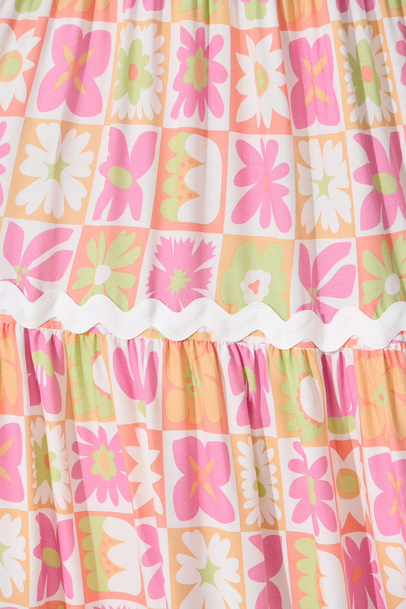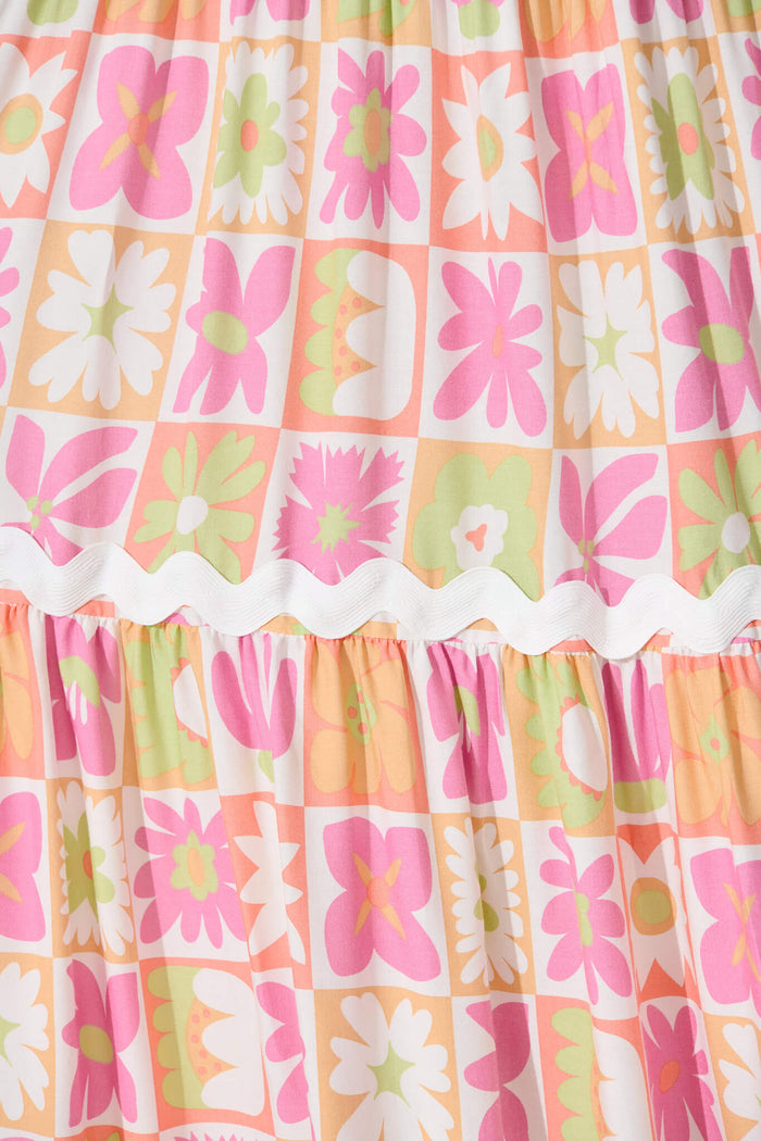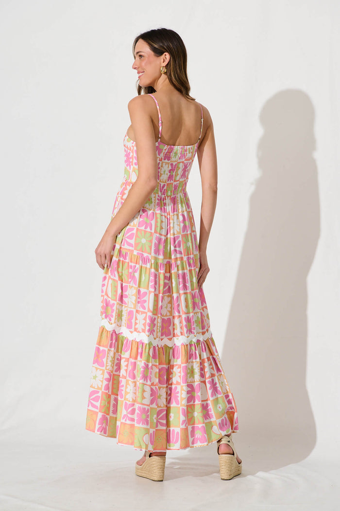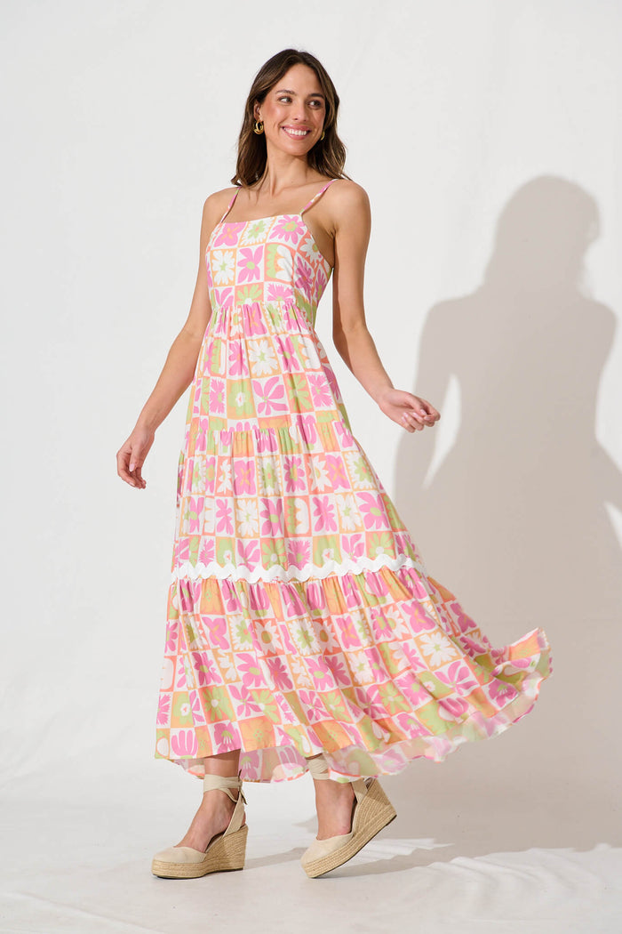 Love And Roses Maxi Sundress In Pink Multi With Ric Rac Trim