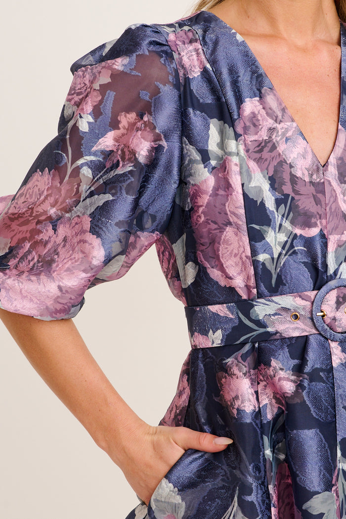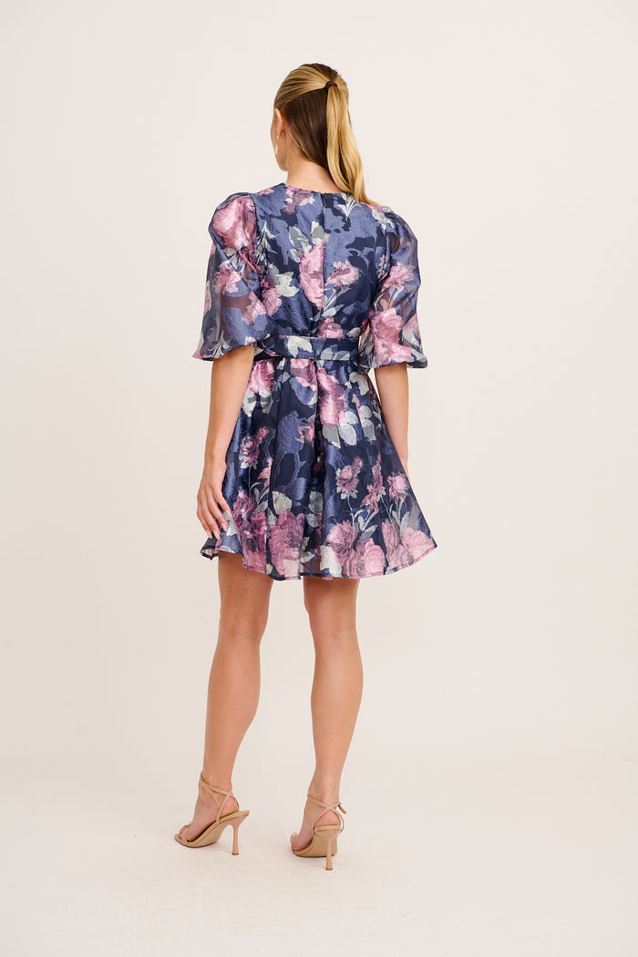 Love Emotions Dress in Navy with Pink Floral Organza