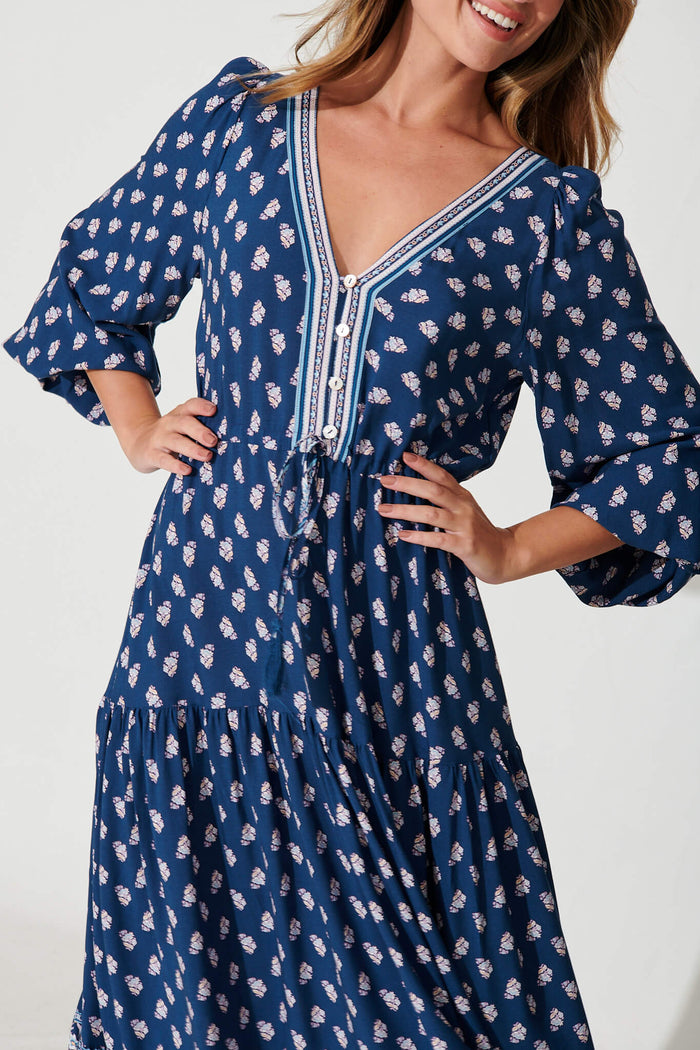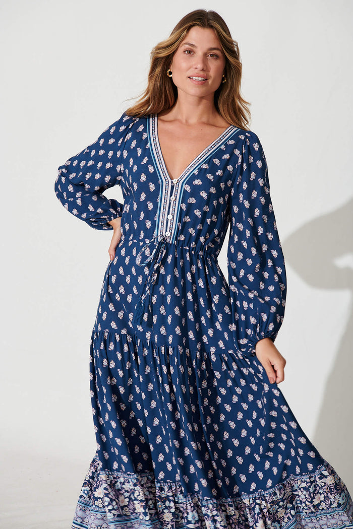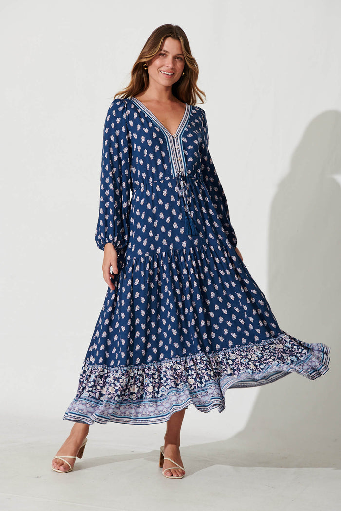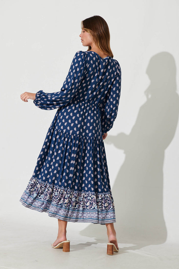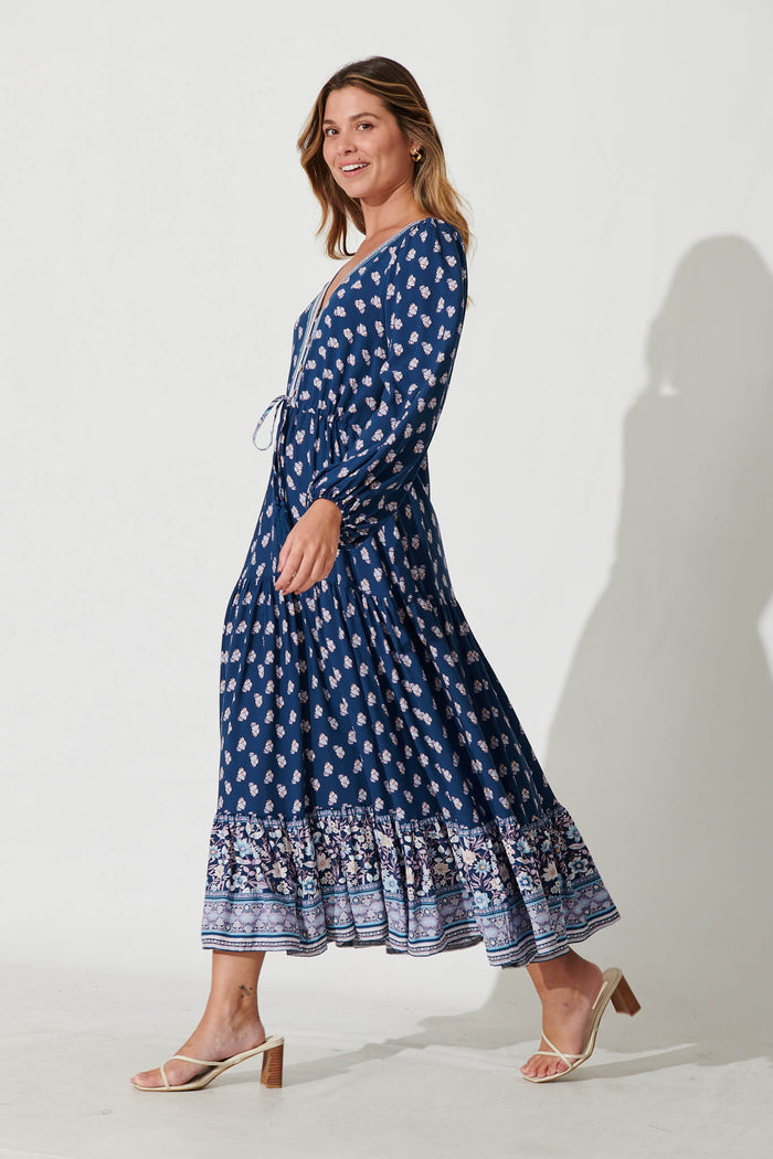 Lovestruck Maxi Dress In Navy With Cream Floral Print