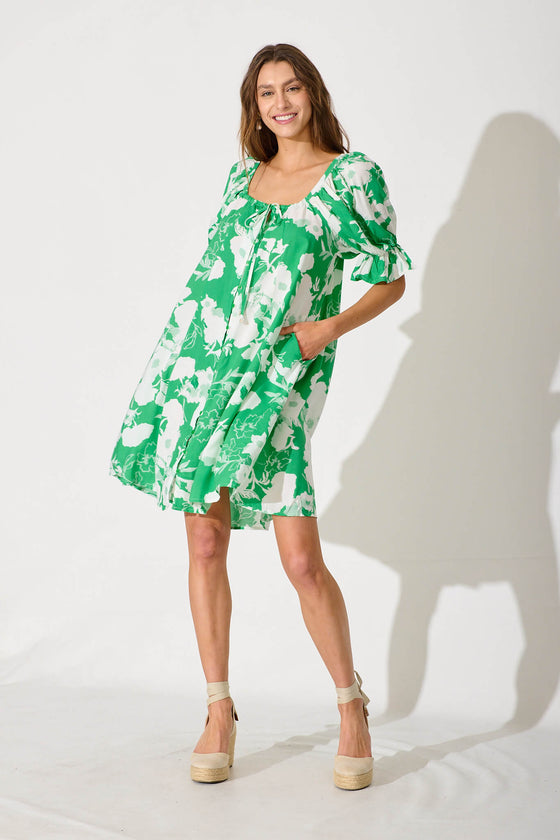 Lucius Dress In Green With White Floral