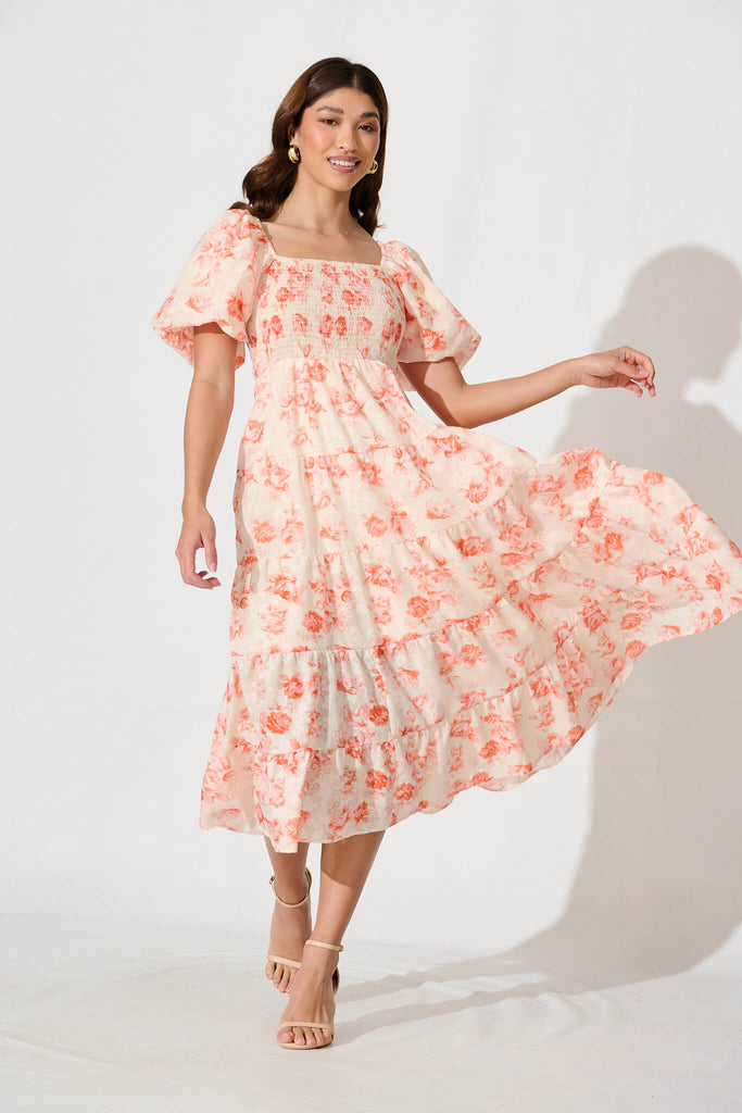 Luella Midi Dress In Orange Floral Cotton Blend