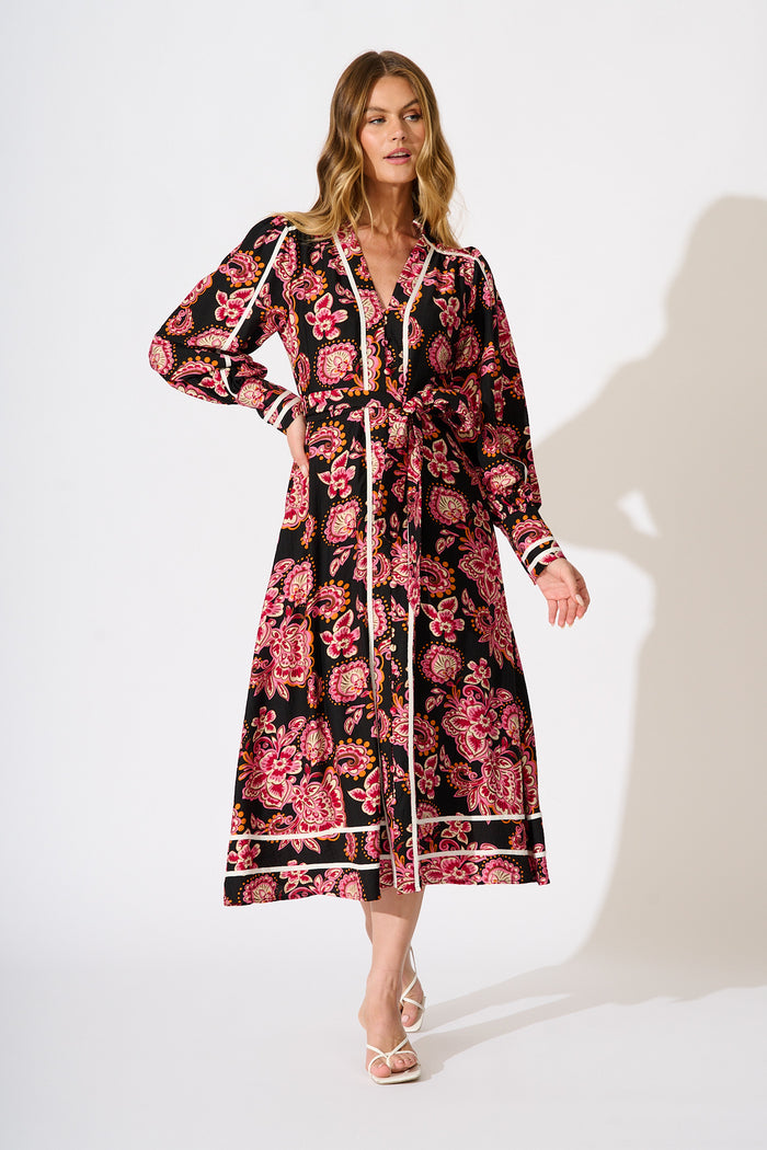 Lumina Midi Dress in Black and Red with Contrast Trim