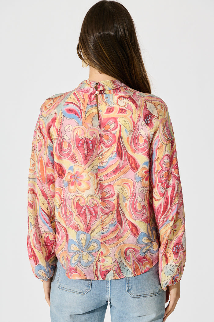 Luna Mirage Top in Multi Pink Print