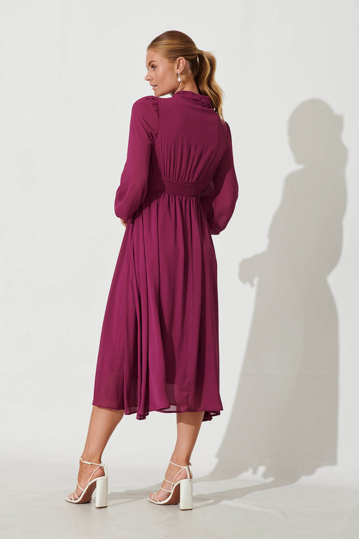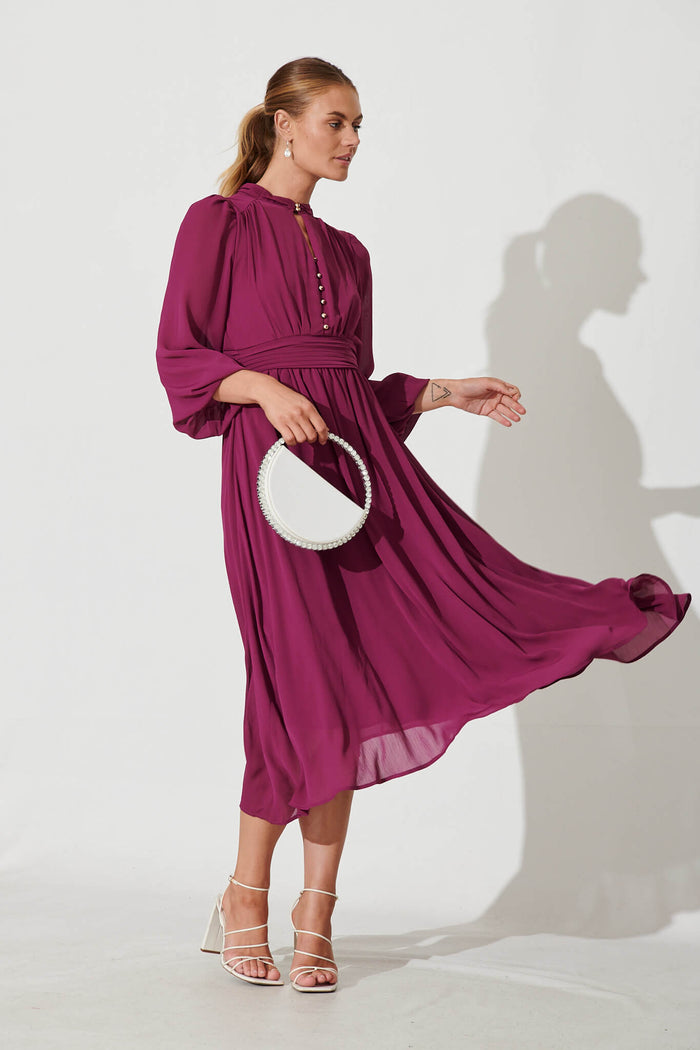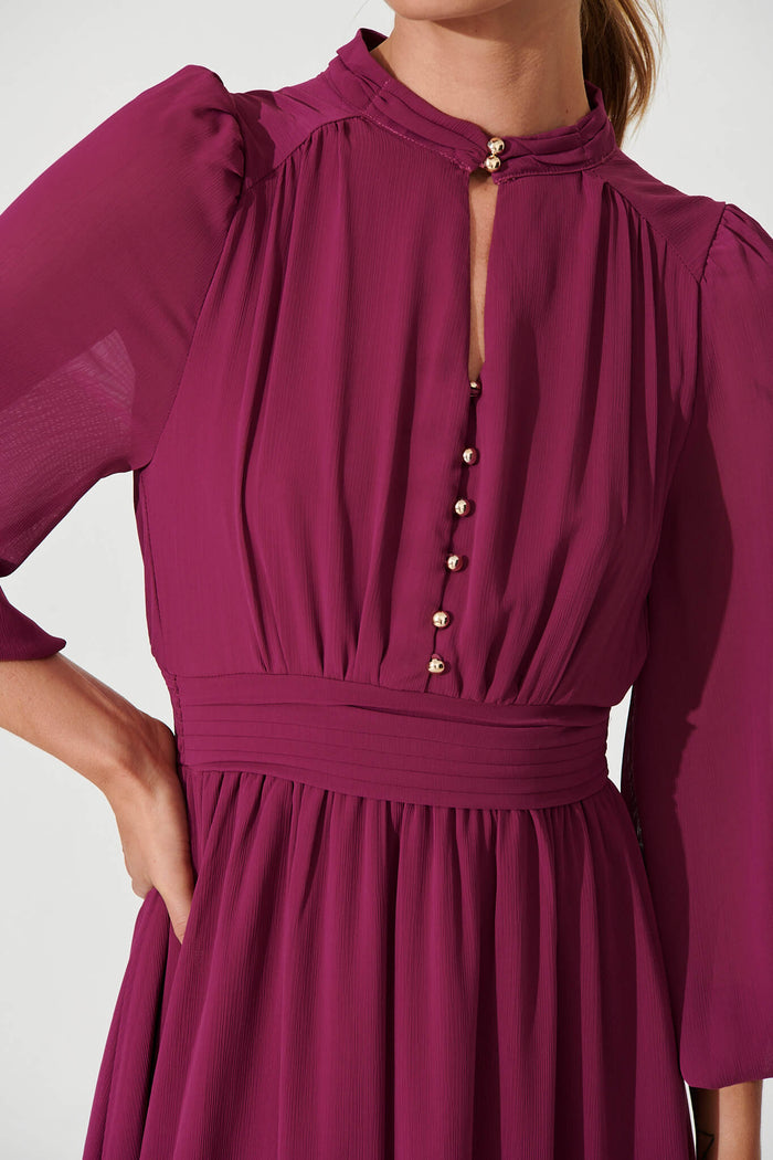 Be the centre of attention in our Lustre Midi Dress! This chiffon fabric and draped front make for a luxe finish, while the gold button details can be worn up or down depending on the occasion. Finish with sleek stilettos and statement gold earrings!