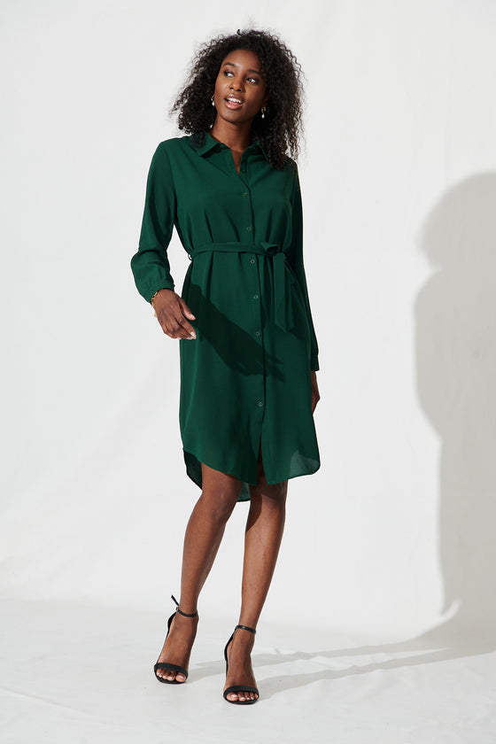 Made from a lightweight fabric, our Maddi Shirt Dress will take you from desk to drinks. Featuring a coordinating waist tie, button up front opening and curved hemline. Wear with your strappy heels, denim jacket and raffia clutch.