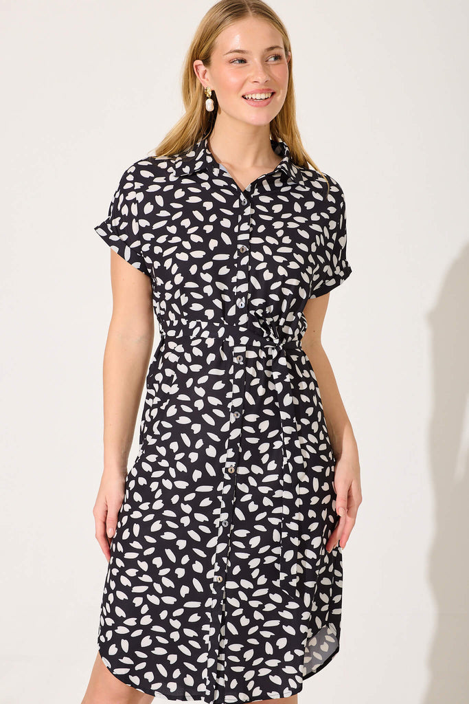 Maddison Shirt Dress In Black With White Leaf