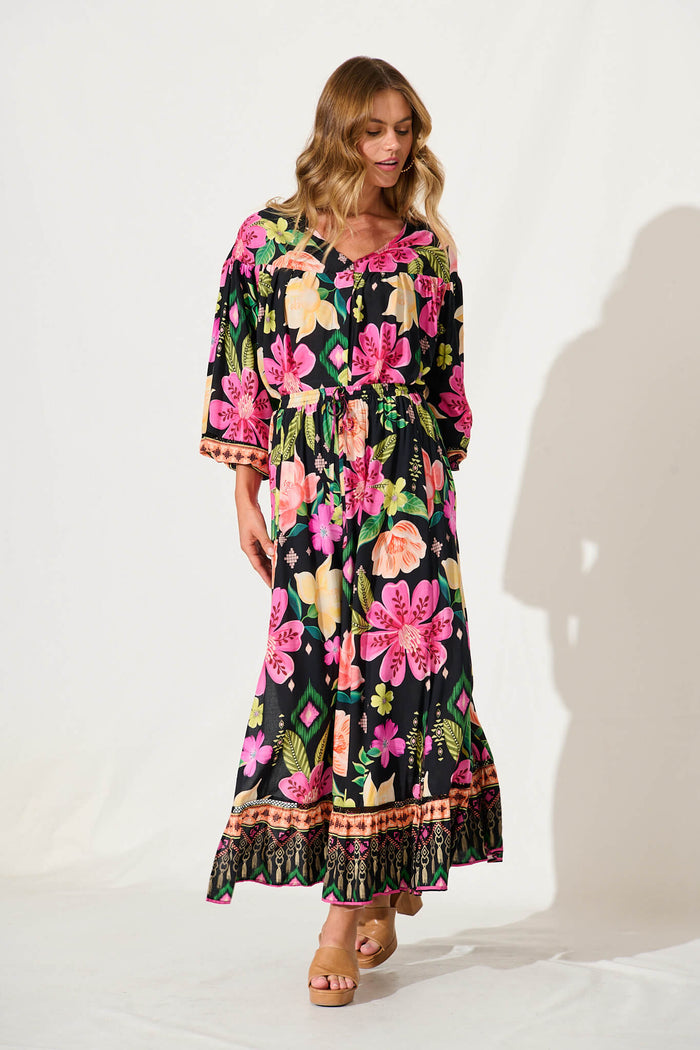 Black with Bright Multi Floral