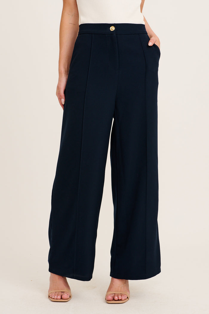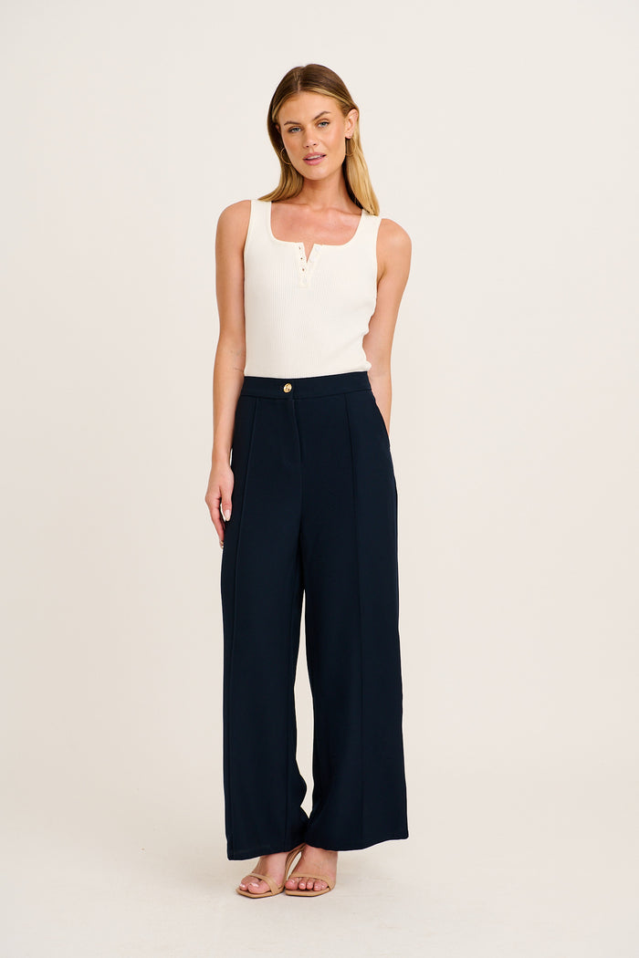 Elevate you wardrobe with our Mantra Pant. Designed to be a key tailored piece, features include a wide leg, button feature opening and a high-rise waistline. Wear with your work attire or glam them up for a night out with the girls.