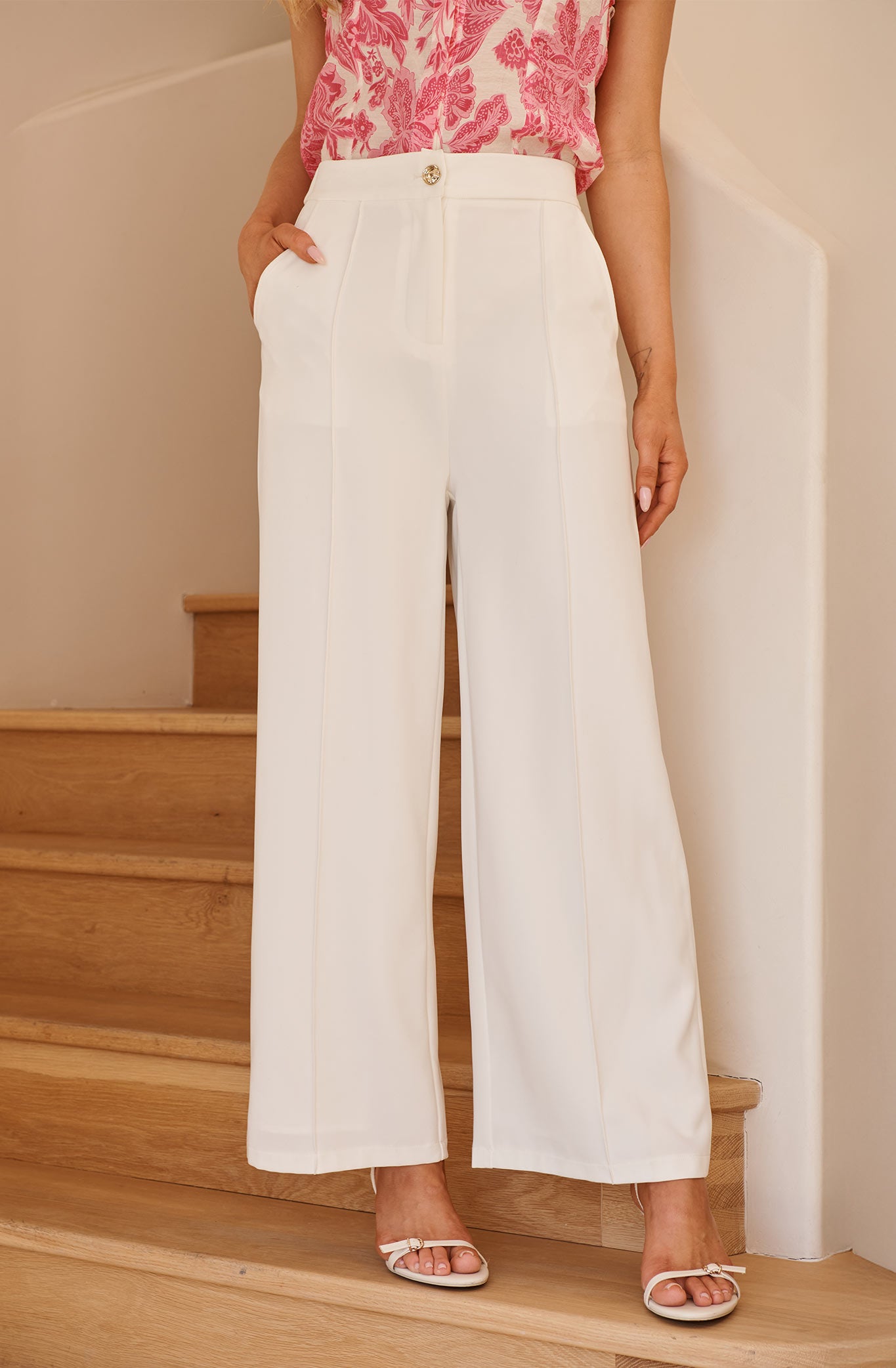 Elevate you wardrobe with our Mantra Pant. Designed to be a key tailored piece, features include a wide leg, button feature opening and a high-rise waistline. Wear with your work attire or glam them up for a night out with the girls.