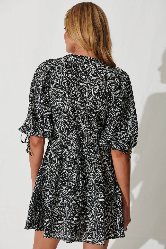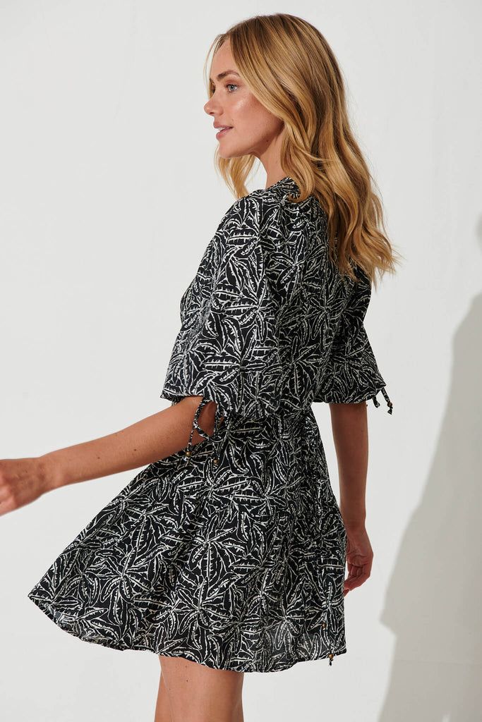 Marconi Dress In Black And White Leaf Print Linen Blend