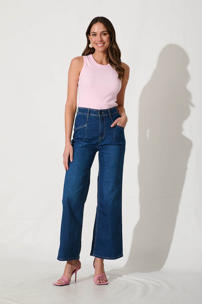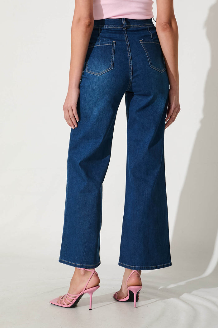 Margaret High Rise Wide Leg Jean In Dark Blue Denim