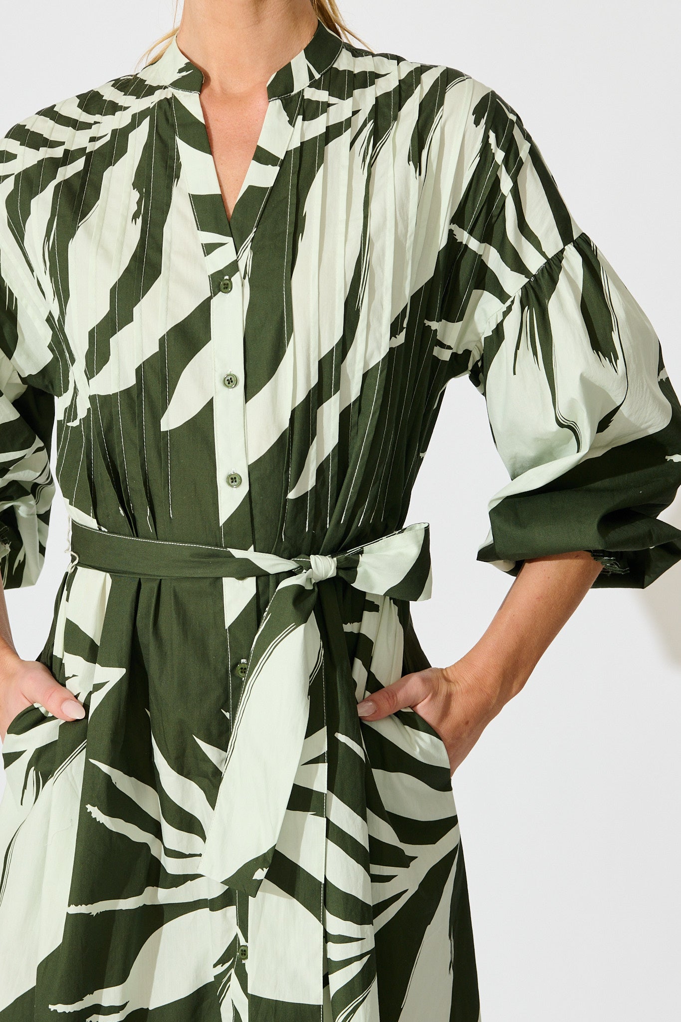 The Margot Midi Dress in Green with White Leaf Print blends relaxed tailoring with crisp cotton freshness. Ideal for workdays or sunny weekends, it’s a natural fibre staple made for effortless everyday wear.
