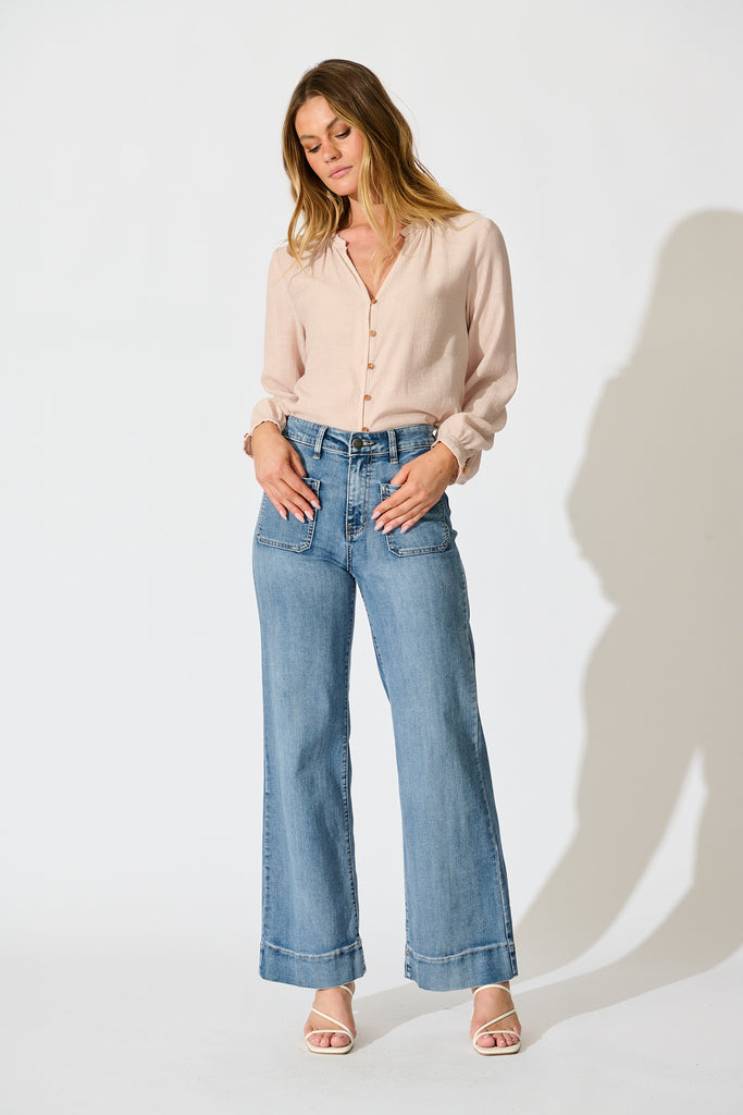 From denim to tailored linen or floaty skirts, this blouse is the kind of piece that makes everyday styling easy—and always pretty.