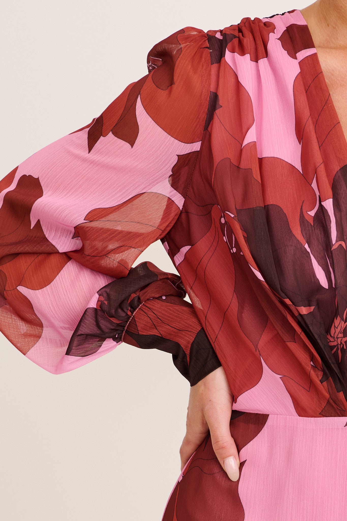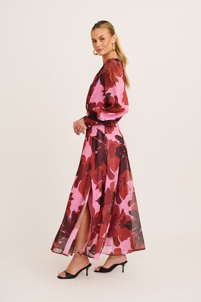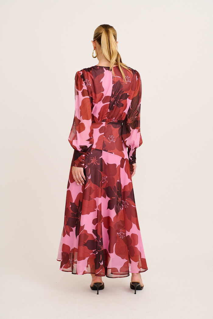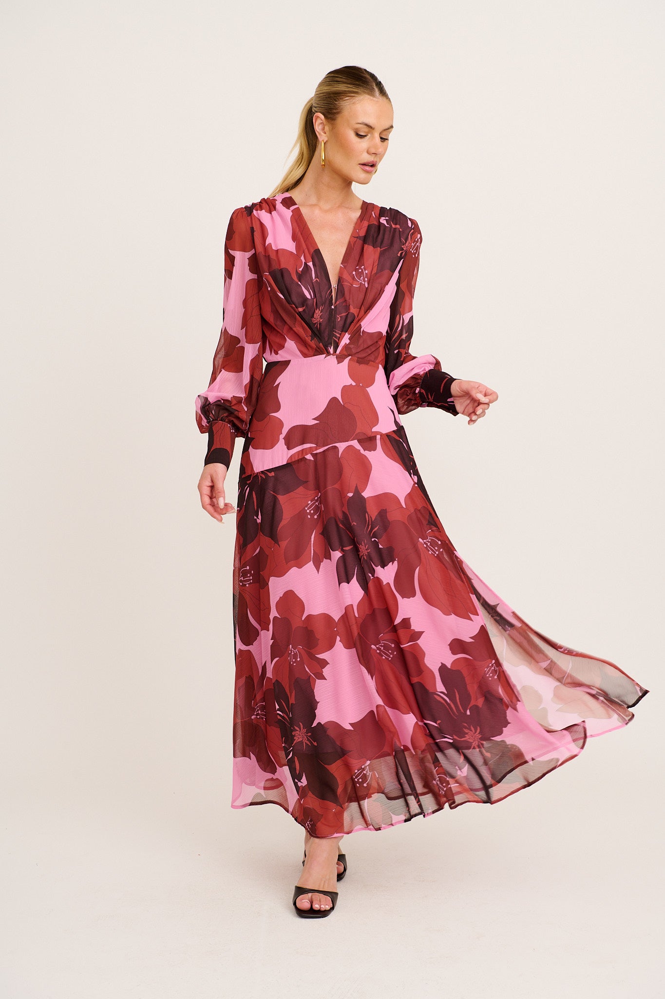 Martina Maxi Dress in Pink and Red Floral Chiffon