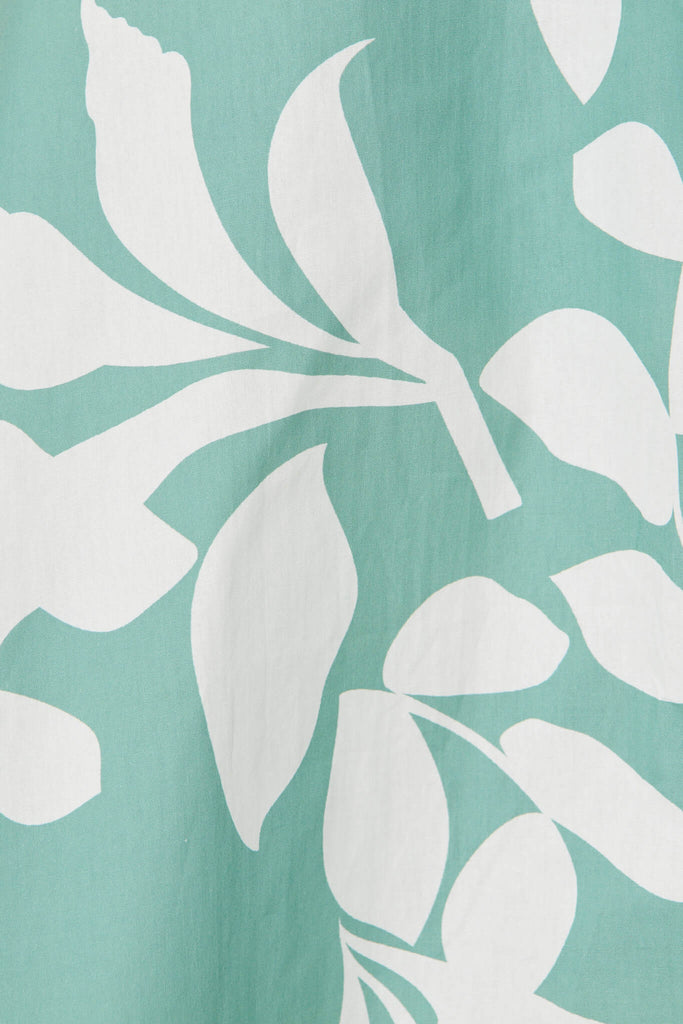 Martine Midi Shirt Dress In Green And White Leaf Cotton