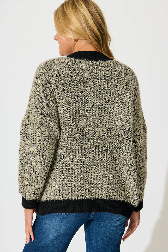 Masami Knit Cardigan In Black Lurex with Contrast Trim