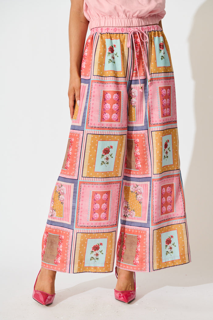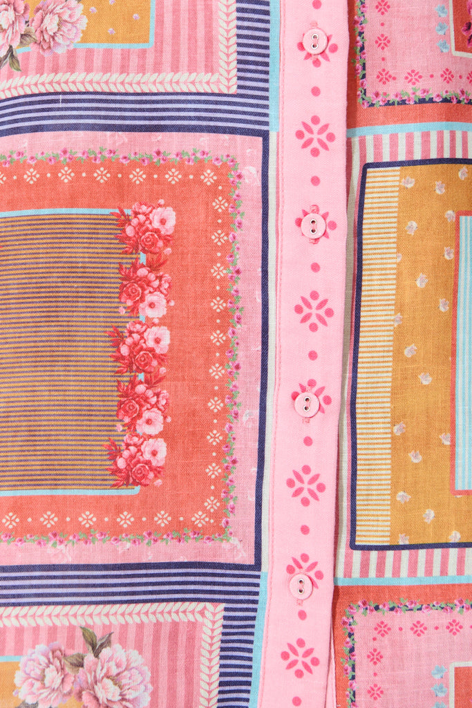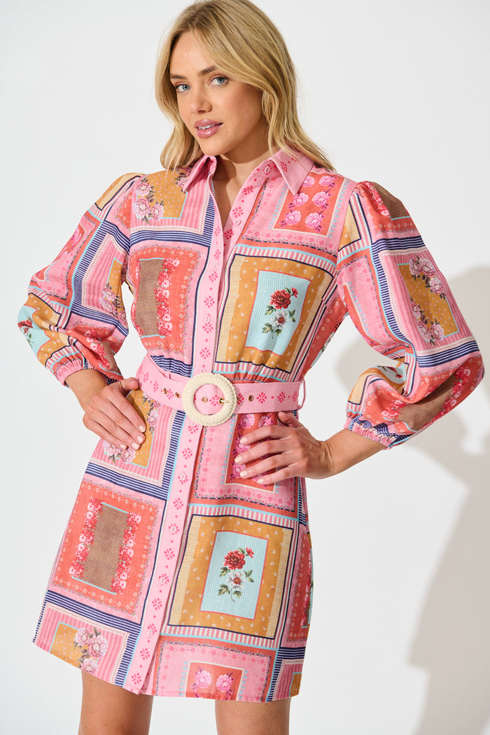 Meadow Muse Shirt Dress in Pink Multi Floral Tile Print