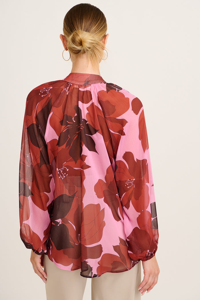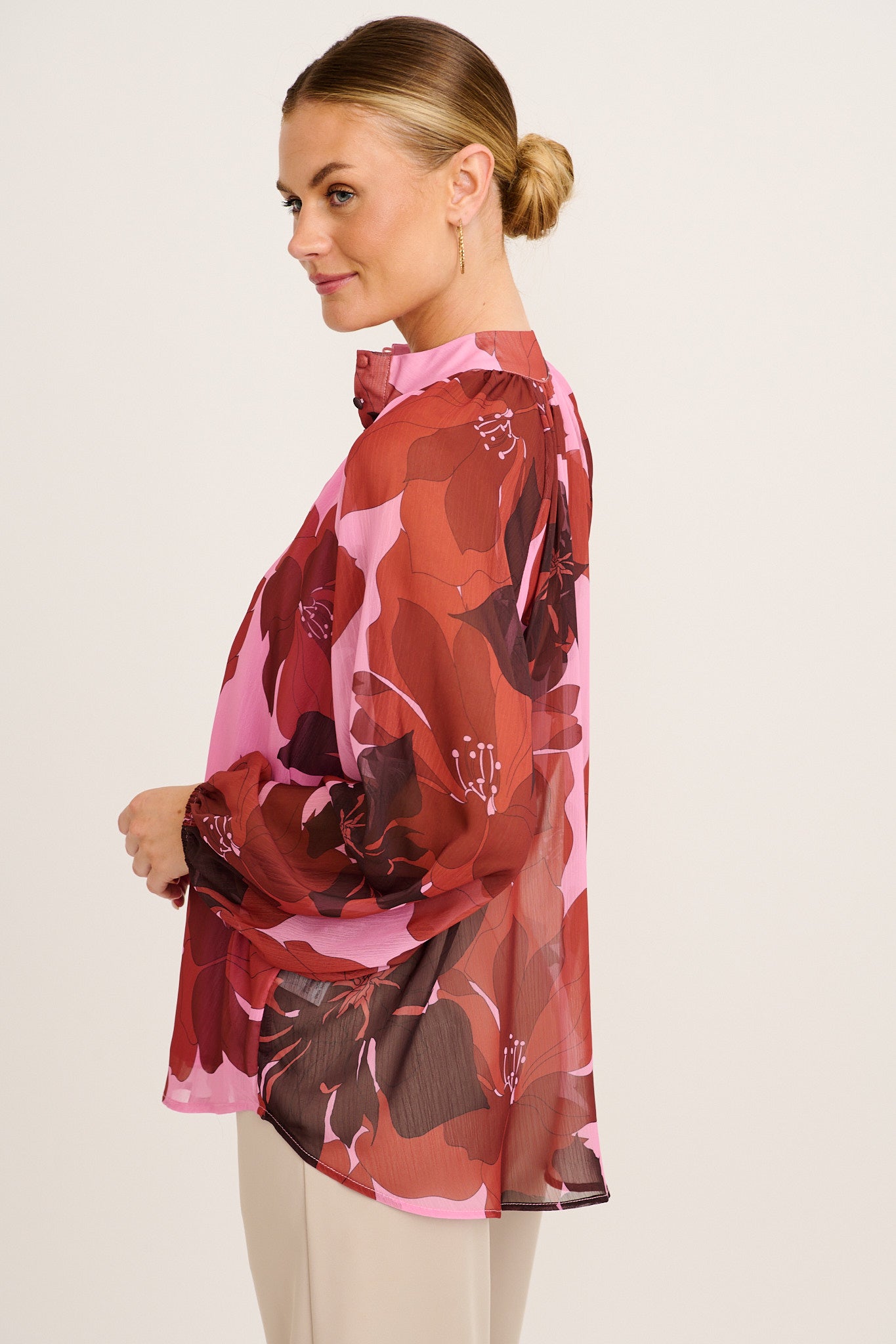 The Melina Top in Pink and Red Floral Chiffon delivers vibrant colour with an effortlessly polished feel. Designed in a relaxed silhouette, this lightweight style drapes beautifully for day-to-night wear.