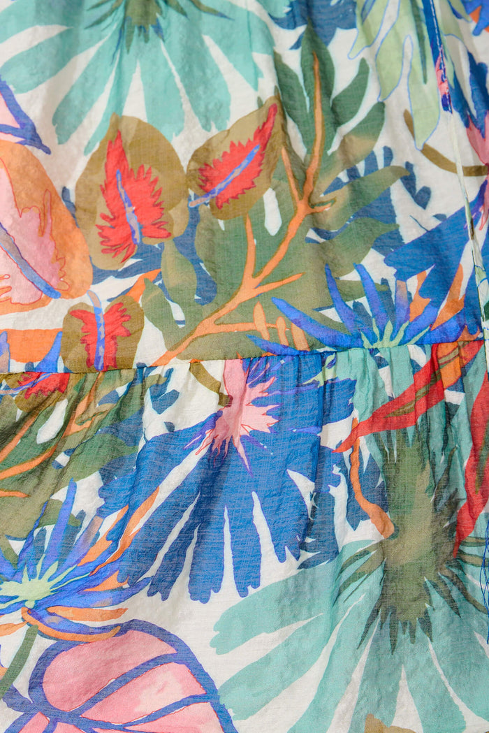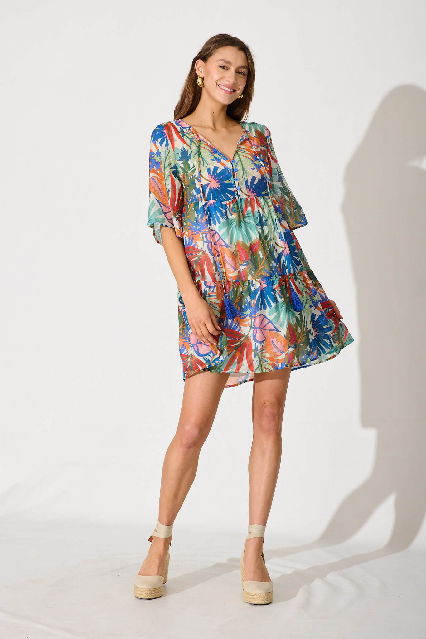 Melodic Smock Dress In Multi Leaf Cotton Blend