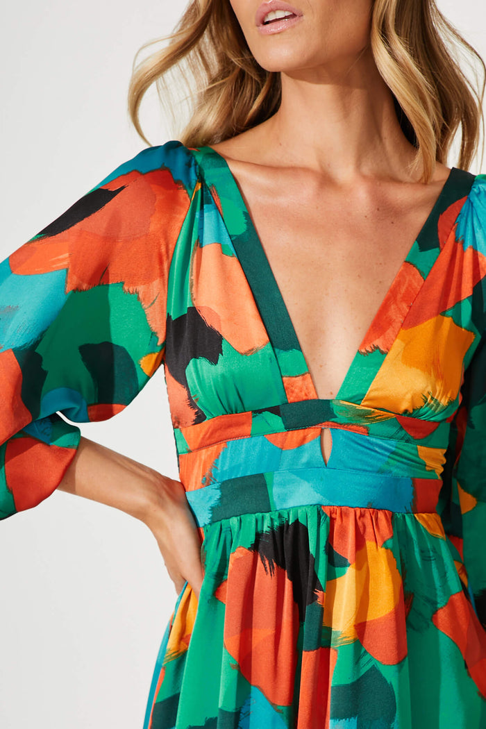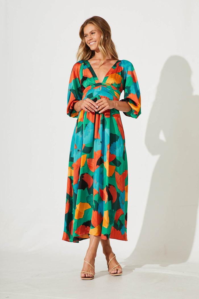 Melski Maxi Dress In Brush Stroke Multi Satin